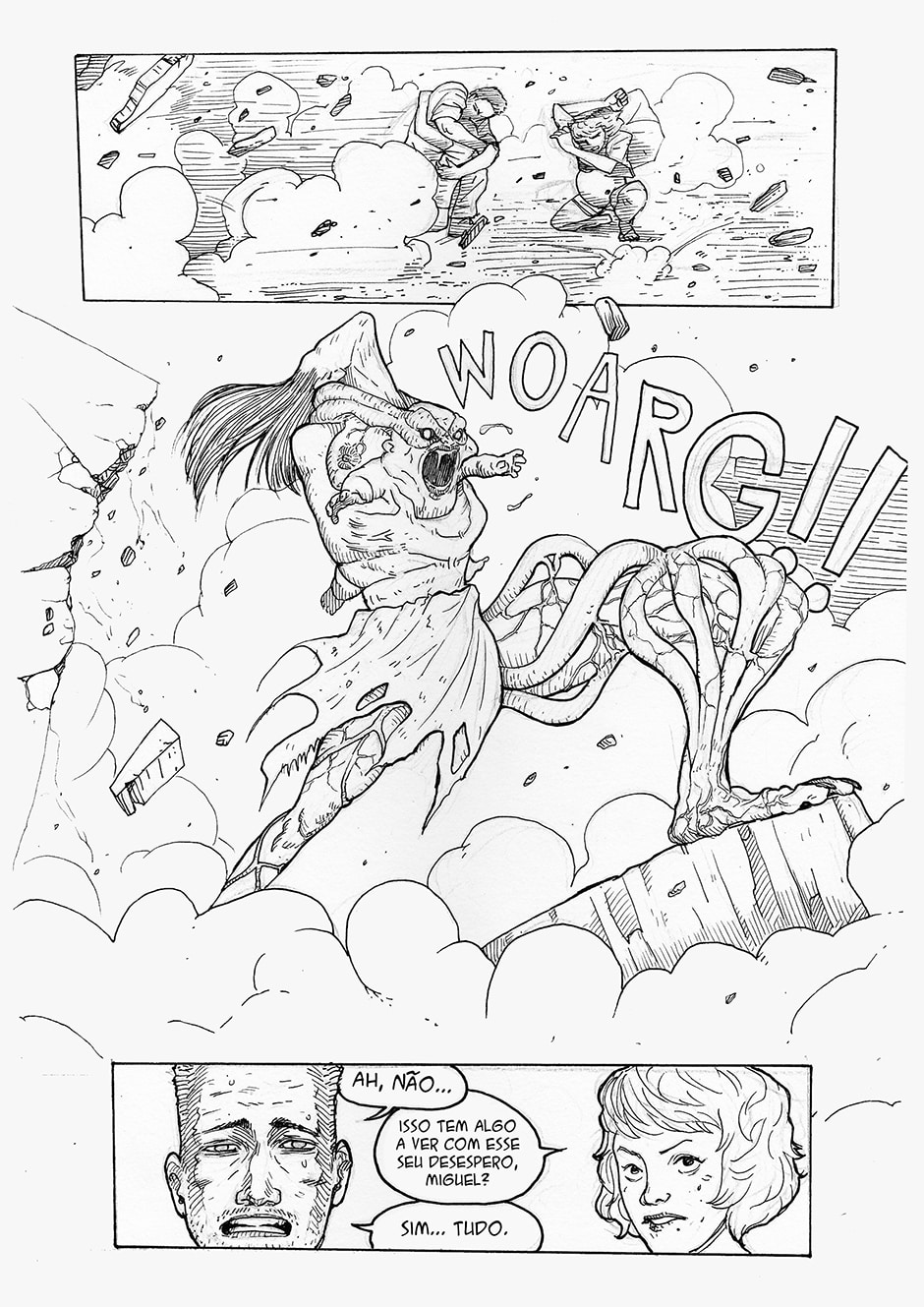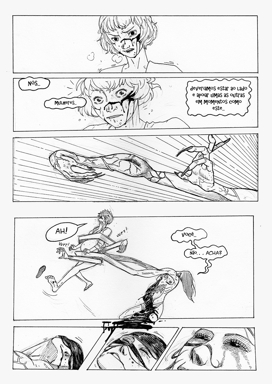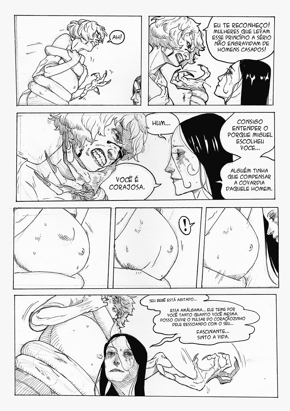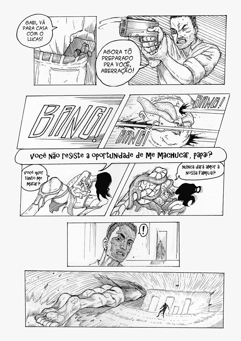Boa! A frase final me pegou, haha Gostei do traço e da energia das formas. Enquadramento organizado. Interessante o conceito da história, bastante nova. Continue com o bom trabalho ^^