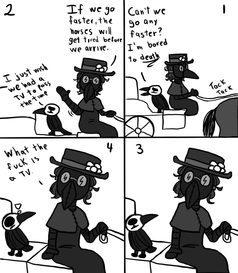 This is a mini side series from my comic Nevermore that follows Elizabeth's & Azrael's daily life. Despite mishap after mishap they're both trying their best to help people!