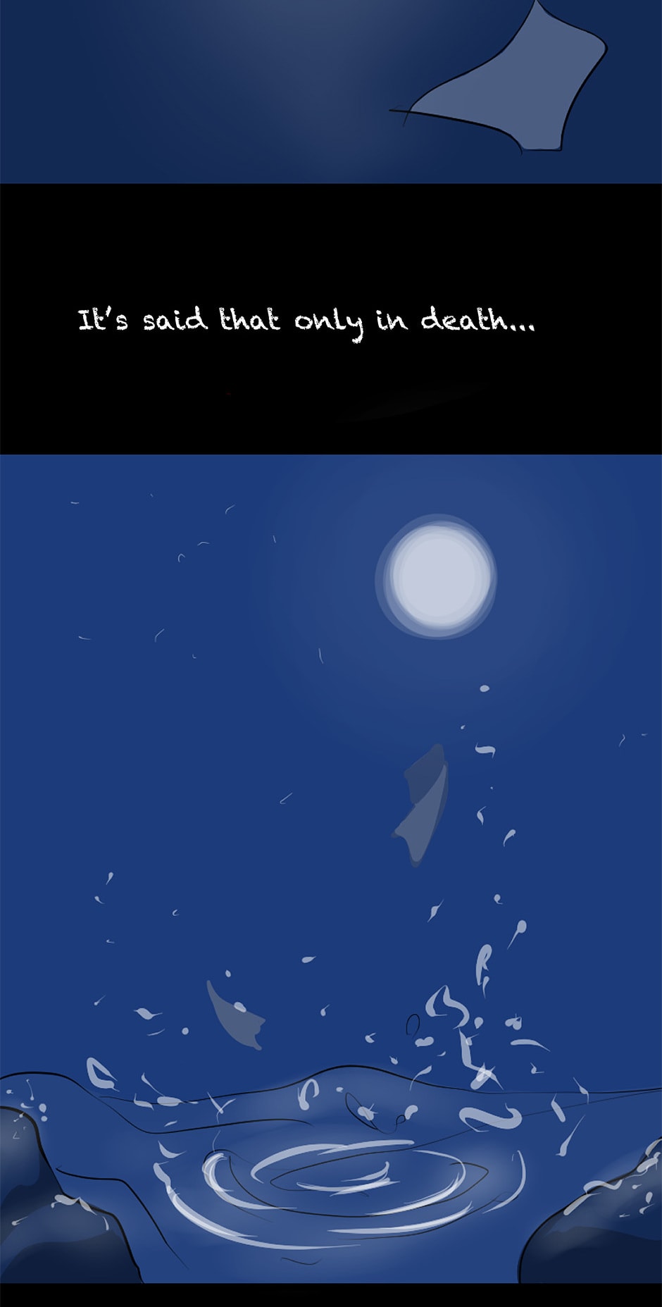 To Kenji, the world was simply black and white; unchangeable, binary, and bleak. His writing career had hit rock bottom. He had no family to his name or anyone of significance in his life. All he knew is if he were to die, he wanted to rest at the bottom of the sea. Fed up, he attempts to conclude his own life but every time he finds himself dragged out of the sea and thrown back onto land by an unidentifiable figure.