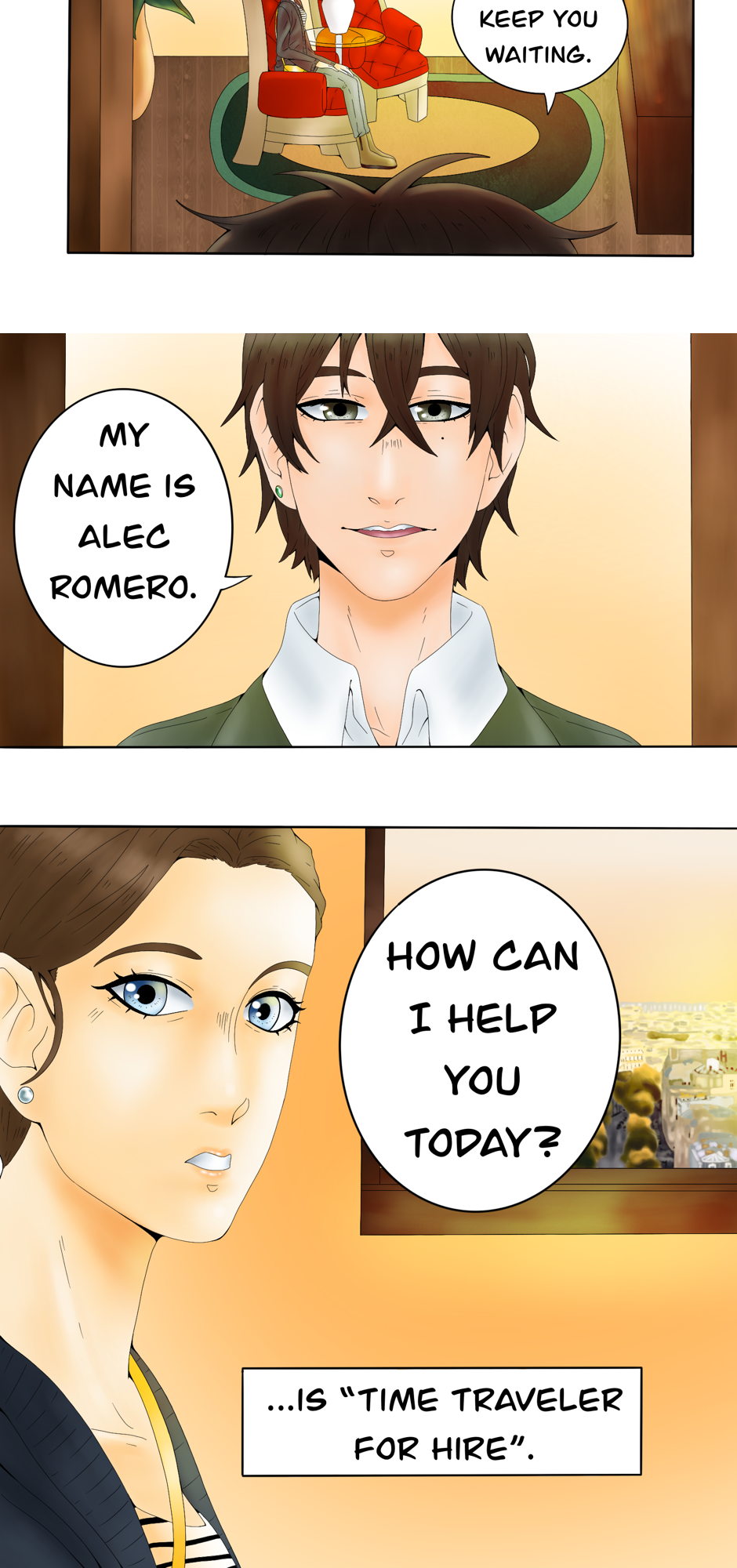 Alec Romero is a sorcerer who owns a magic shop, but that's just a front for his real line of work -- being a time traveler for hire!