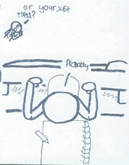 I got 0 hours of sleep that day :( Sorry for the rubbish quality, I can't draw digitally at the moment so you have to deal with this for a while... :(