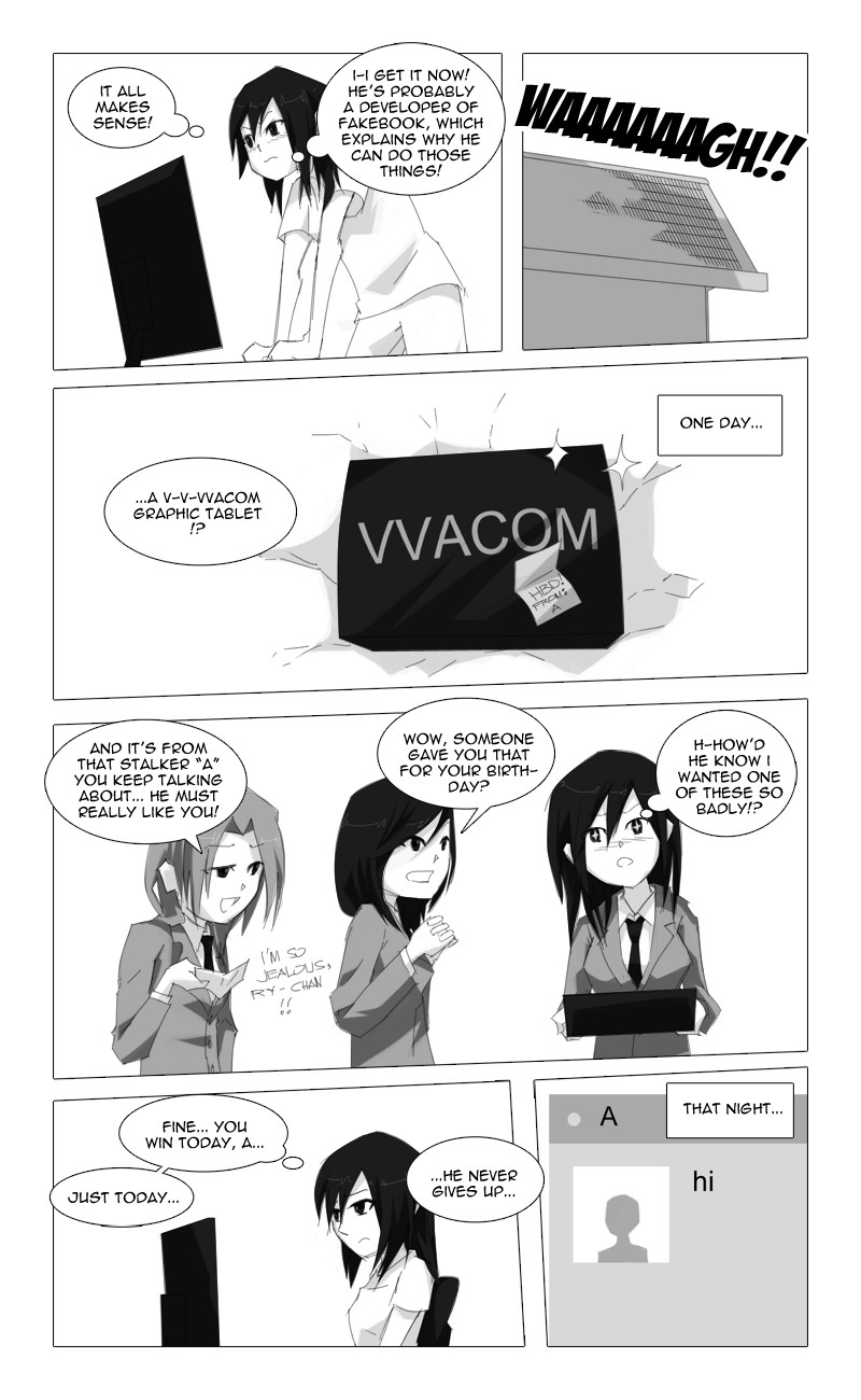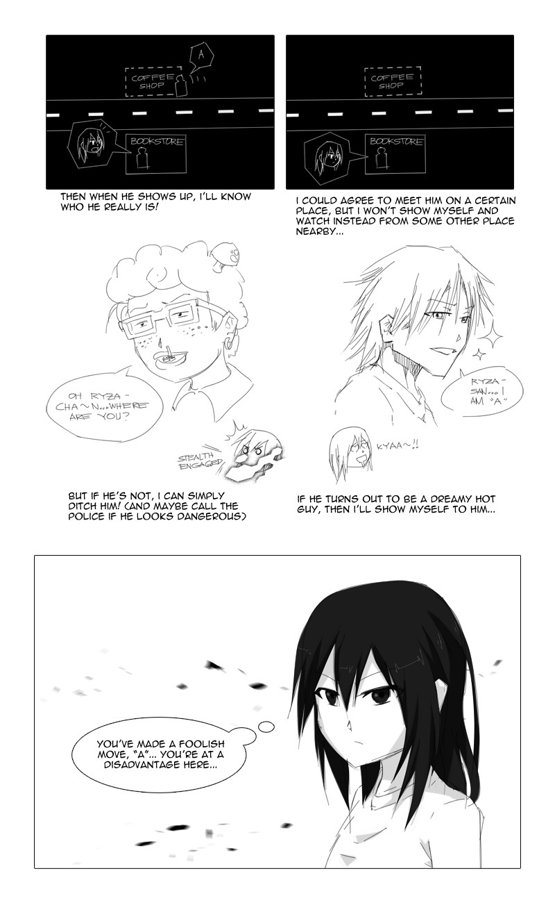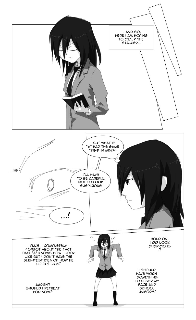 It seems that Ryza Hartfelt, a high school student, has a stalker who calls himself "A"... But "A" proves to be no ordinary stalker when, one day, he warns Ryza about something which could have killed her.