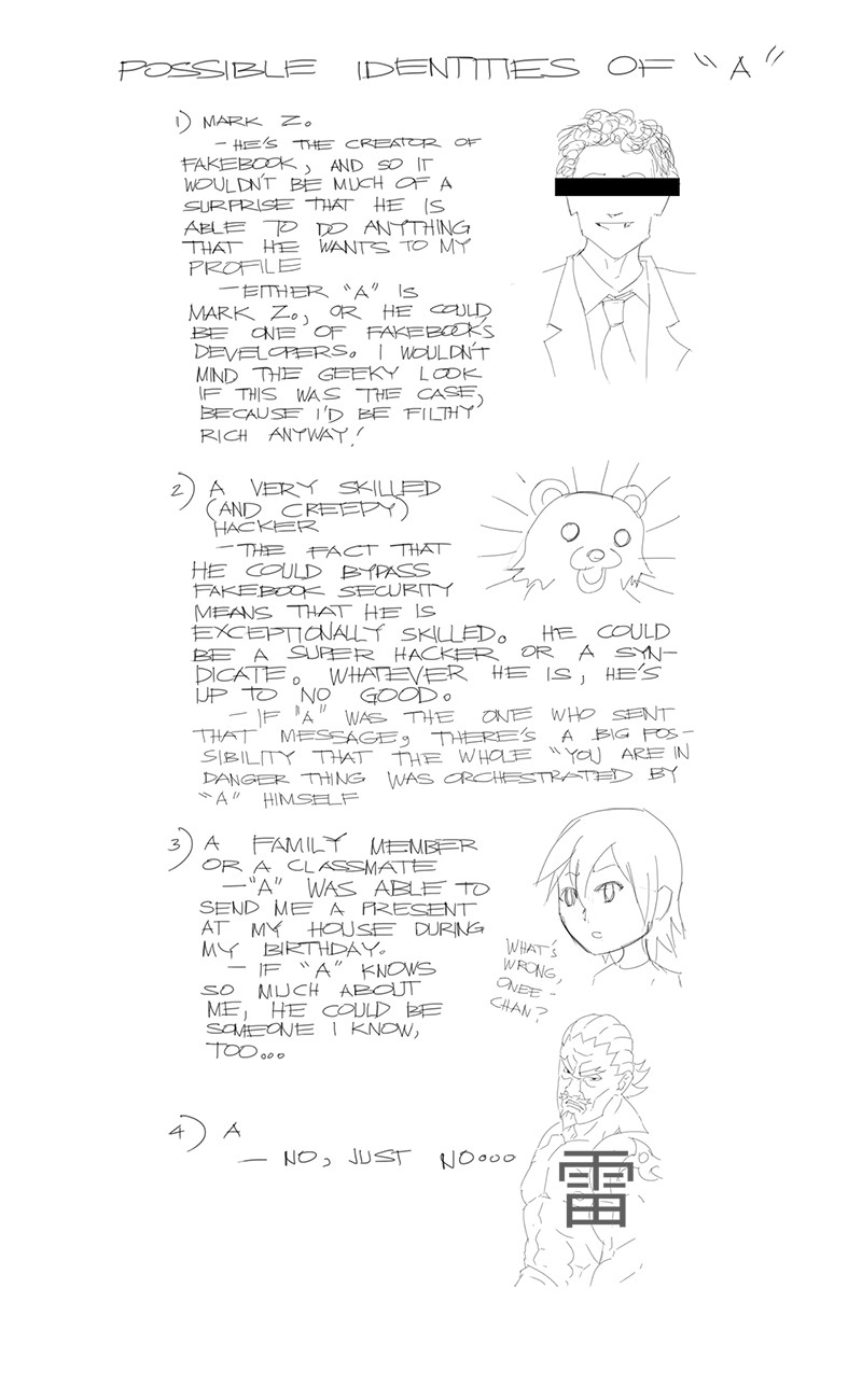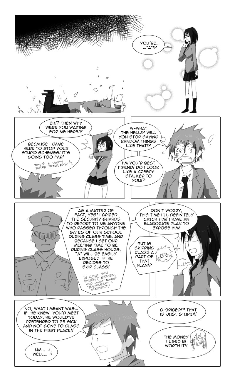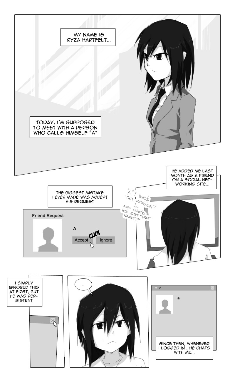 "A" is a light story of how a young girl, Ryza Hartfelt, learns how to deal with infatuation, stress, friendship, and an unknown person who calls himself "A".