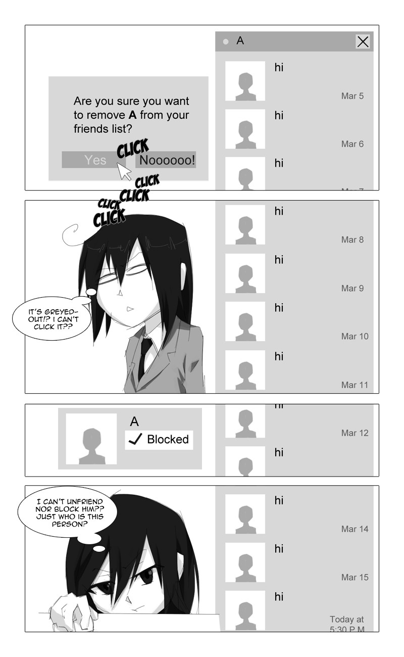 At first, she dislikes "A" for being a stalker, but that soon changes as she goes through a journey of self-discovery with him.