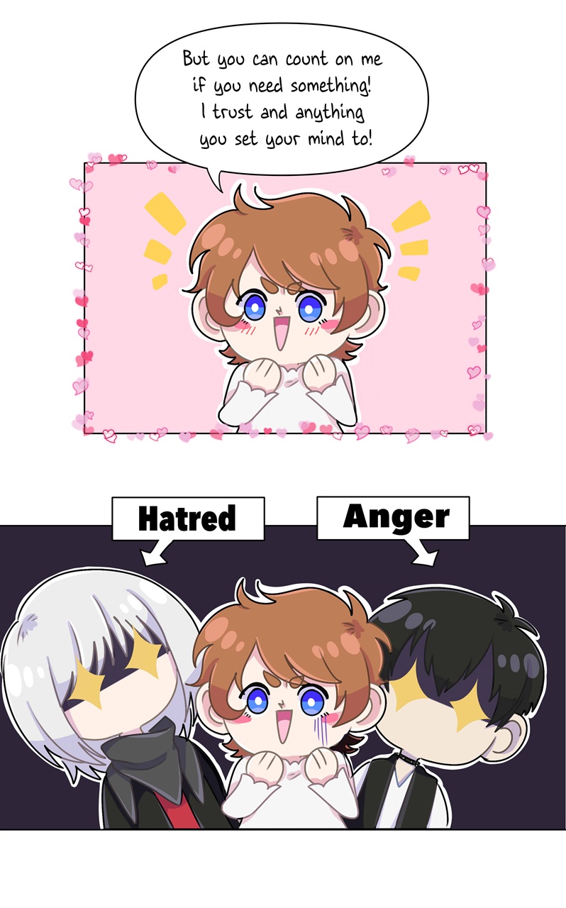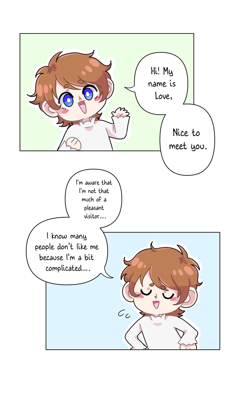 In this peculiar "world" each person represents a feeling: Affection, Jealousy, Shyness... you name it! Love is the protagonist, around whom everything revolves. Despite being clumsy and seemingly innocent, he's willing to do anything to befriend everyone, even less friendly feelings like Anger. What will he do to achieve this? What will happen if Love becomes associated with feelings that could harm him...?