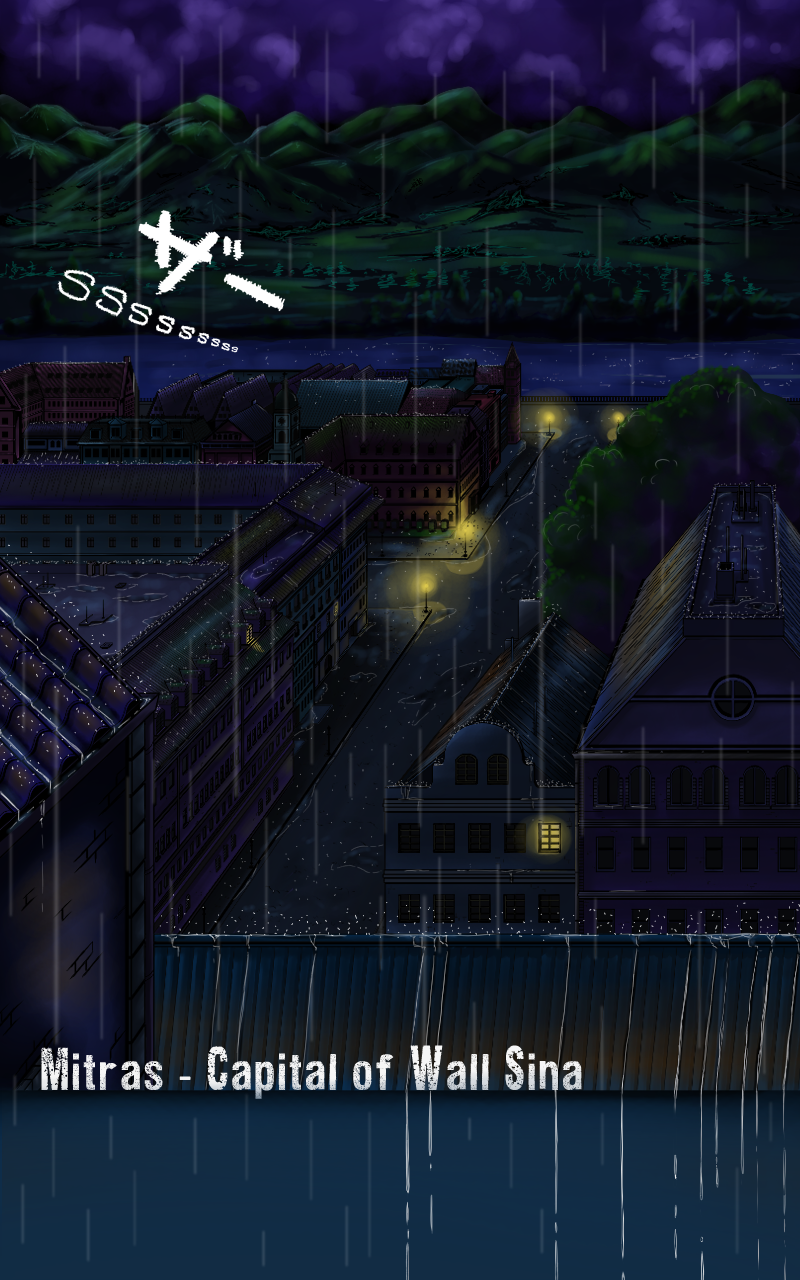 The capital city of Mitras is known for its pristine lands and high-class lifestyle—fields that stretch for miles under blue skies, warm sunlight, and starry, moonlit nights. But, unbeknownst to those who dwell within the city of Wall Sina, another world exists.