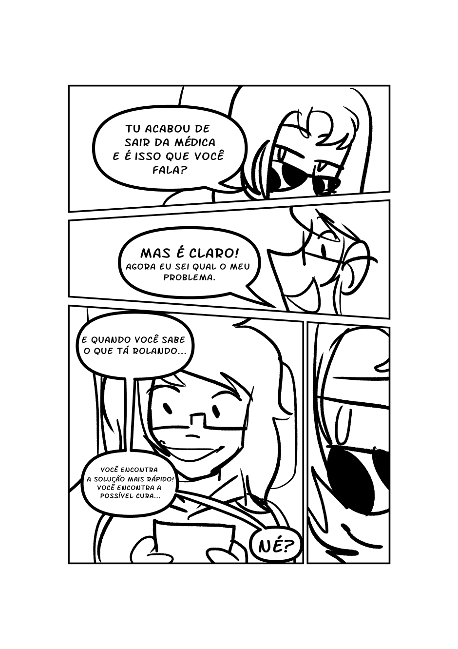 Com o laudo médico em mãos, ela volta para casa normalmente e conversa com um amigo. Enquanto isso, recebe uma visita inesperada.