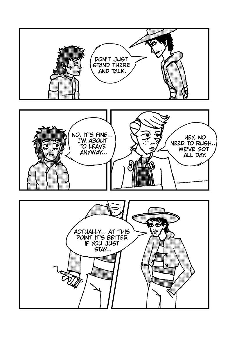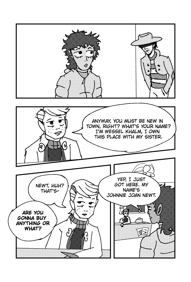 Johnnie Joan Newt ventures into his home town of Surfin' USA in hopes of finding answers and closure to his past, but this quiet little sea side town has more then he may be ready to handle... (This is a spin-off to the Jojo's Bizarre Adventure fanpart Jojopolis also found on Webtoons. Although this can be read alone, please read Jojopolis first. Also, read from right to left, like a manga.)
