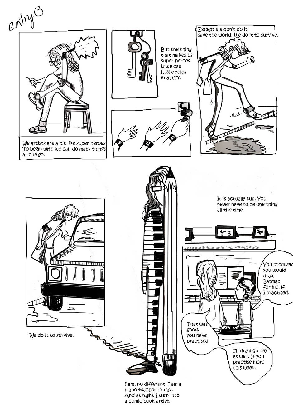 Surviving as a comic artist and a pianist.