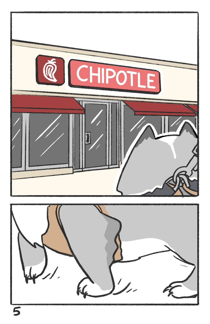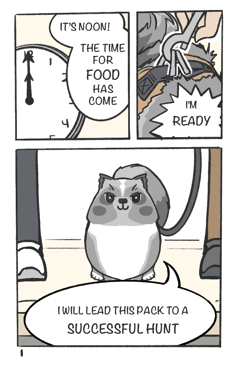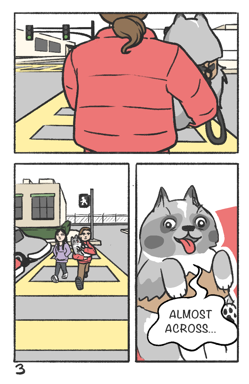 Titan knows it's lunch time. Time to brave the urban jungle to fetch the magical meat bowl from across the street!