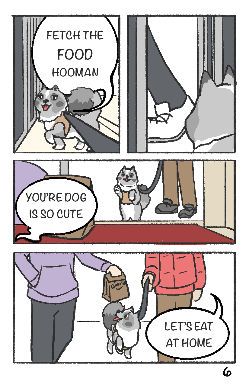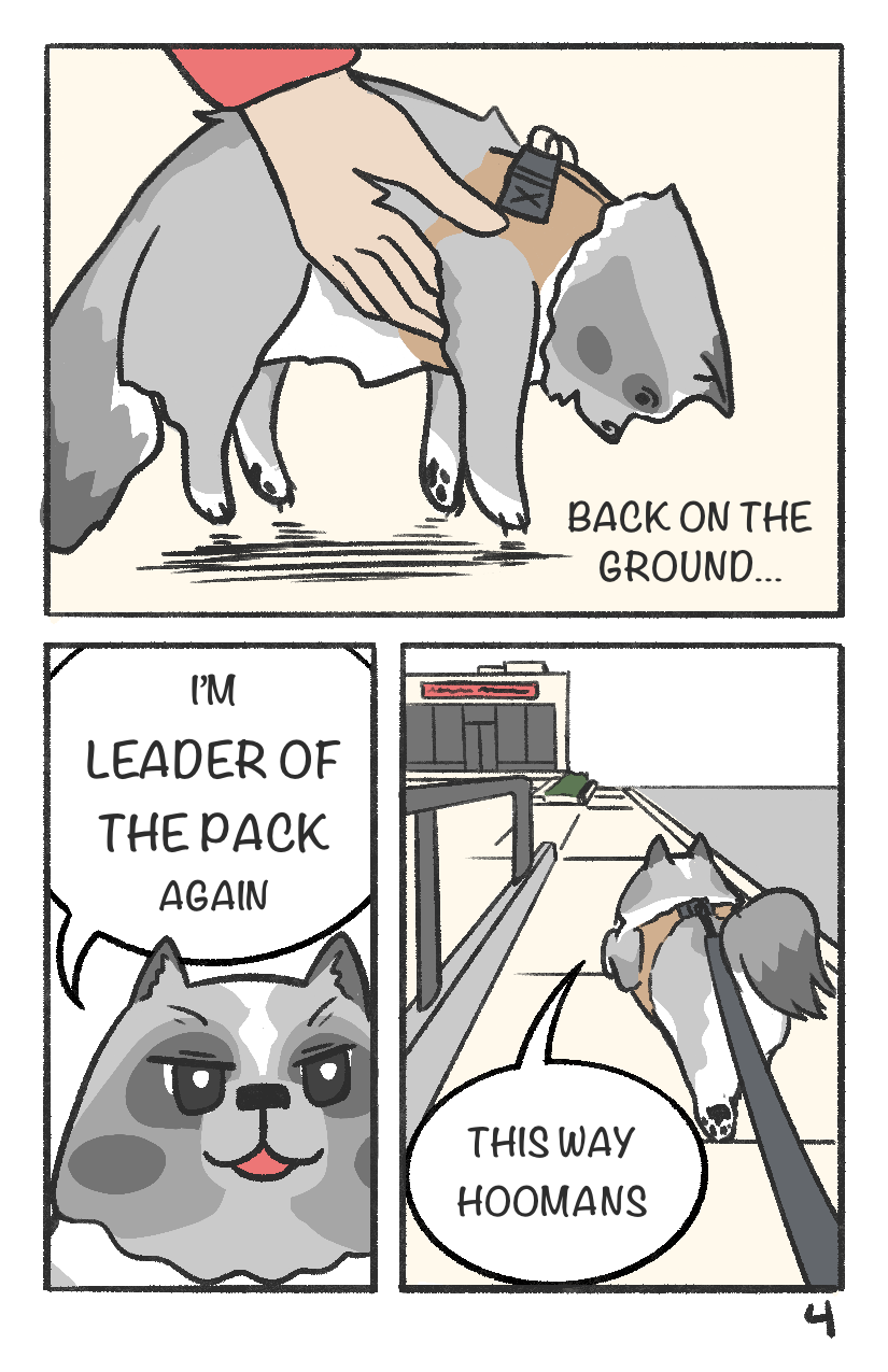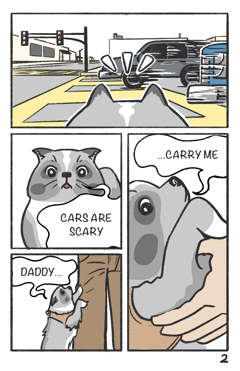 Titan knows it's lunch time. Time to brave the urban jungle to fetch the magical meat bowl from across the street!