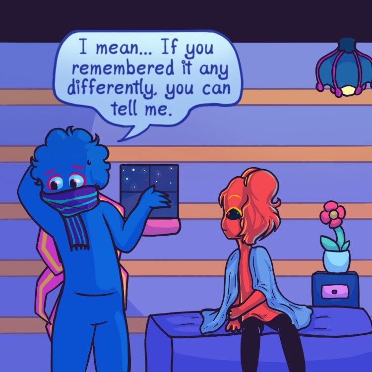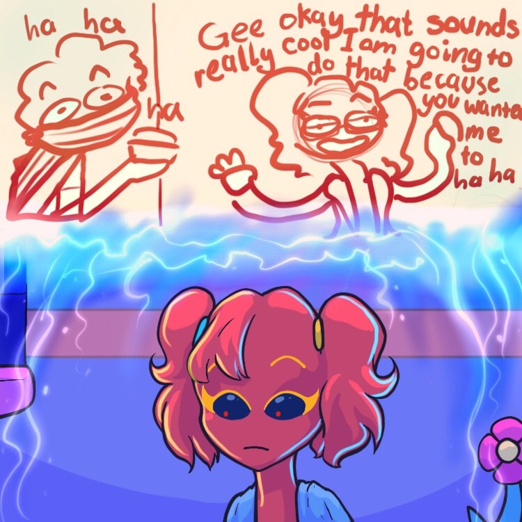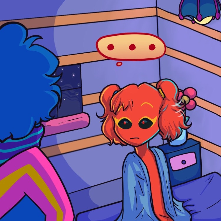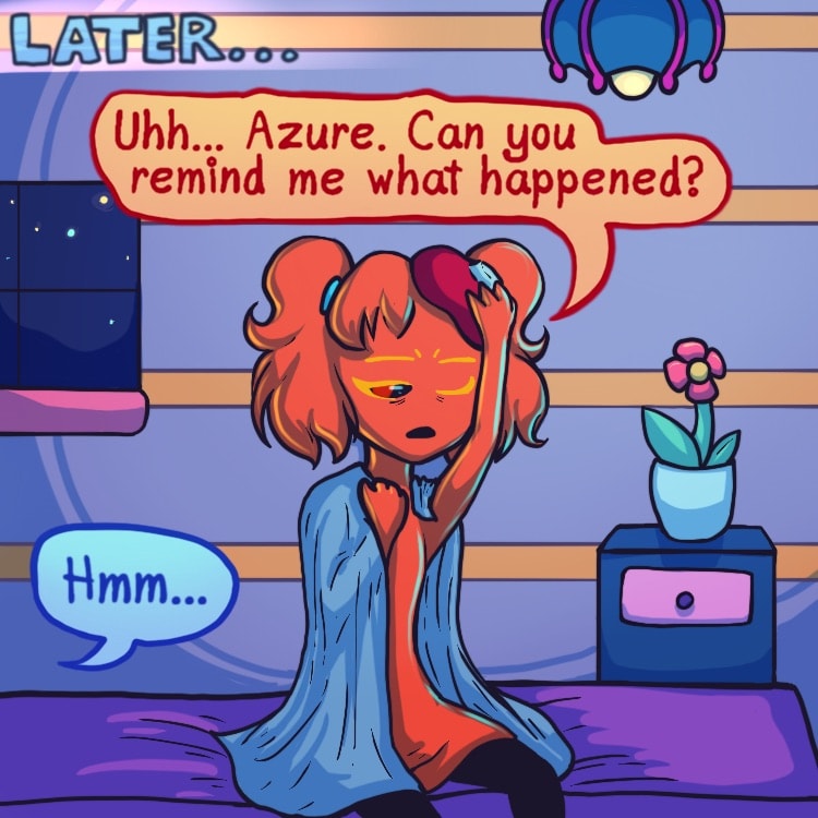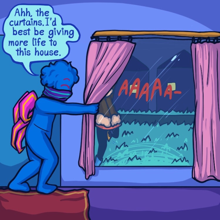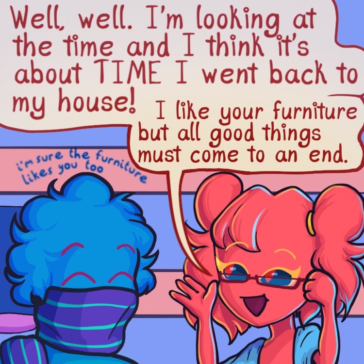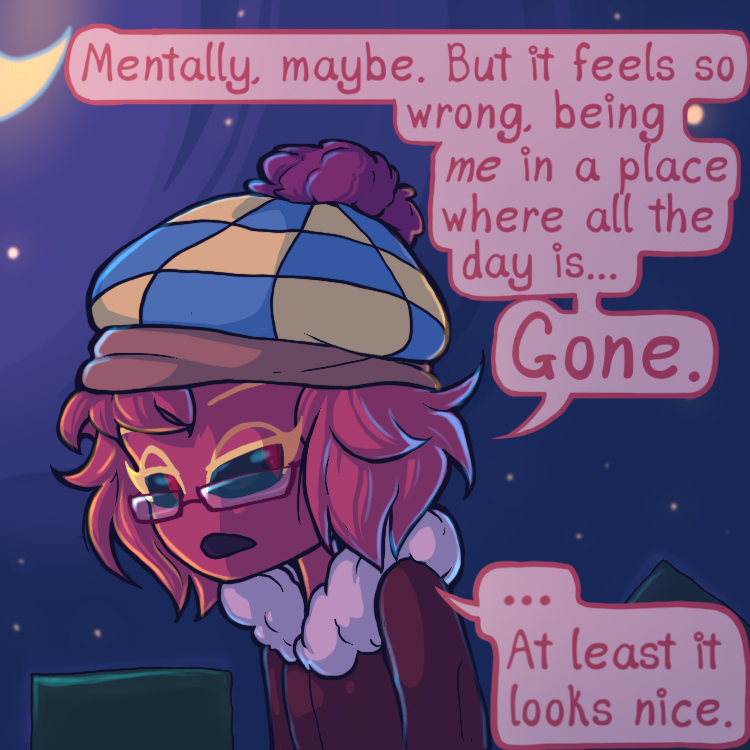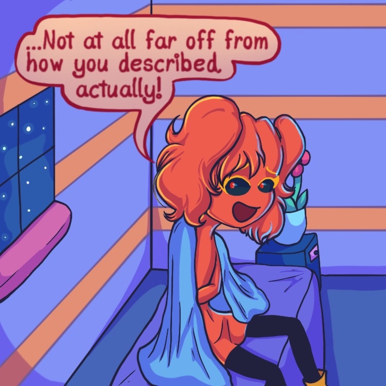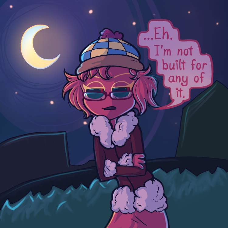 ...Only problem, she’s a picky person and all of the superstitious odds are stacked against her- being a walking, breathing Rudolph nose in the land of blue and all. Lucky that she has two fellow oddball friends with her, no matter how confusing she finds them to be!