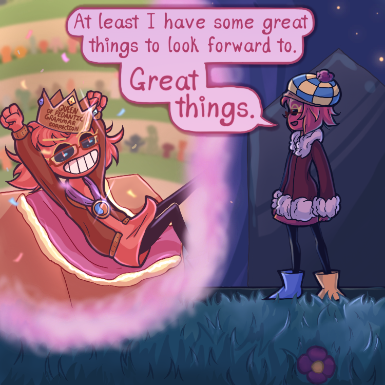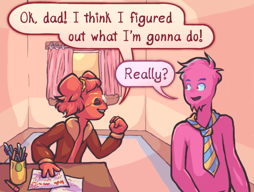An ambitious young red girl by the name of Vermillia Spherichrome (uh, Millie is fine, too) decides it’s finally time to plan out all she has to do in her time in the cool Glacington!