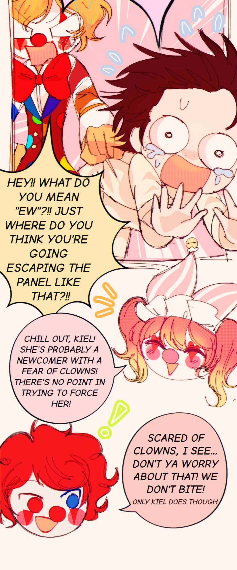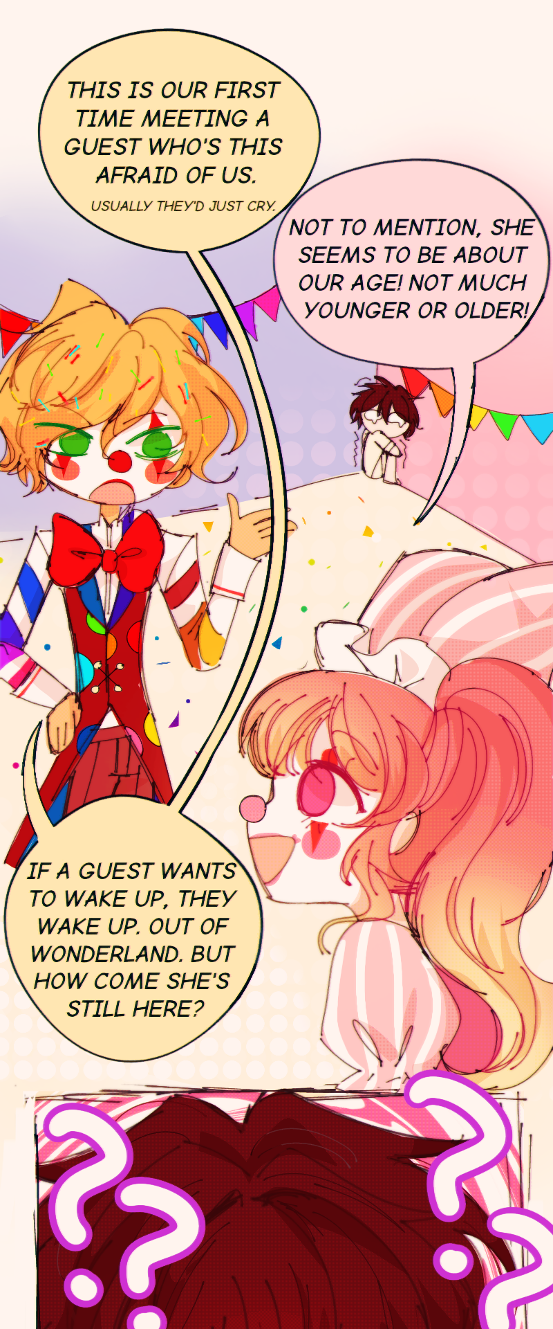 Ageha dreams about encountering a group of wacky teens in a bizarre universe... But it turns out she wasn't dreaming! With no way out and the possibilities of waking up are slim, she is invited to indulge in a life full of chaos, fun, and—clowns!