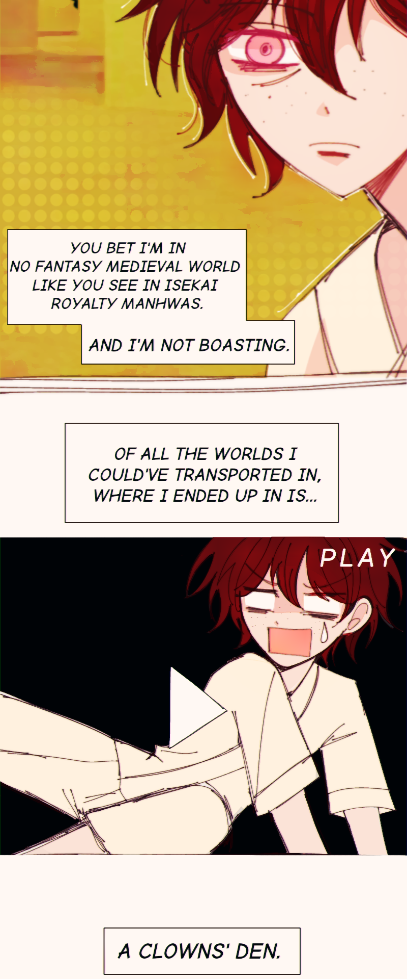 i just want to inform that i've recently moved to Tapas after two years of using Webtoon so you may expect to find stuff (specifically the artstyle) in this comic that are a bit outdated.