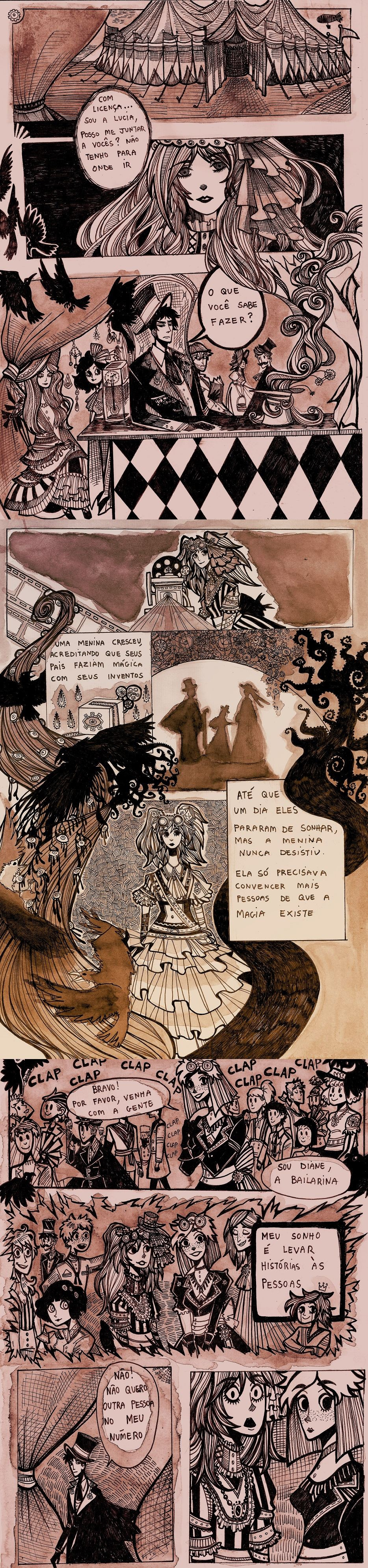 Lucia chega ao circo com sua caixa misteriosa.