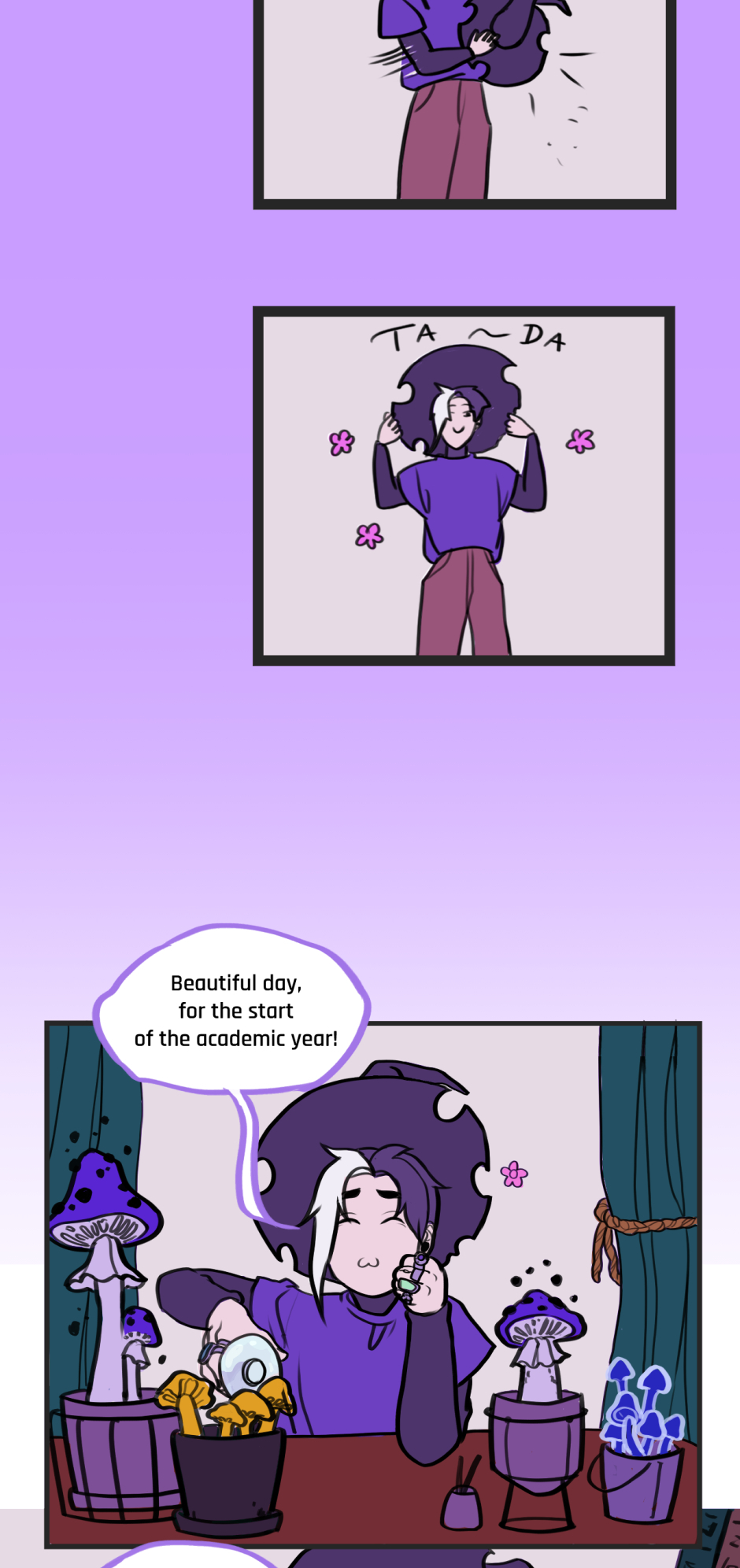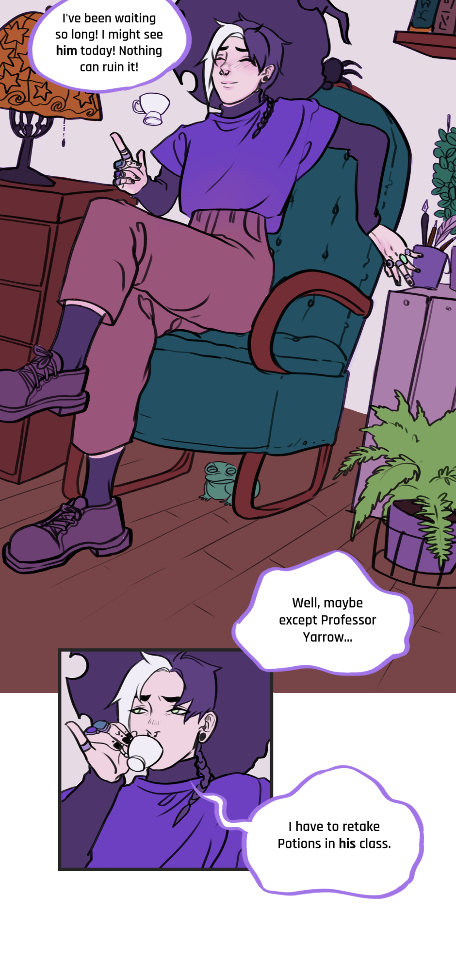 Amethyst is a witchcraft student trying to win the heart of his crush, Amber. It's not an easy task, as Amber is the picture-perfect idol of the Academy. The only chances Amethyst has to catch him alone seem to happen during… mushroom-picking trips at dawn?! Come to think of it, Amber seems to cross paths with Amethyst surprisingly often. Could it be the work of the other witchboy? No way! But hey, that works in his favor, right?