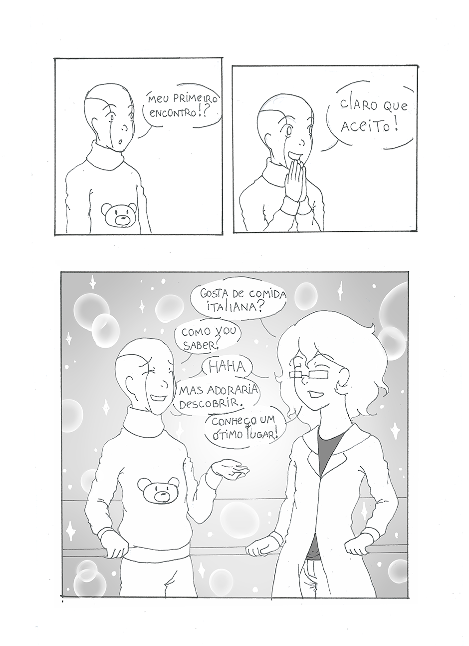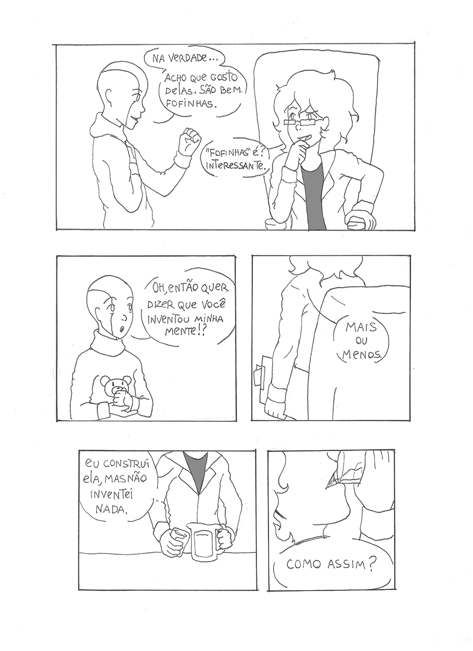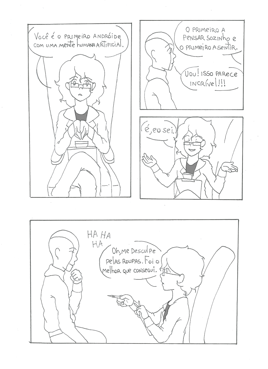 Sentado cara a cara com o primeiro robô capaz de sentimentos, um cientista tem que descobrir como ele sente. O que ele não esperava era descobrir por quem ele sente. Escrito por Duane Henrique Ilustrado por Welerson Daner