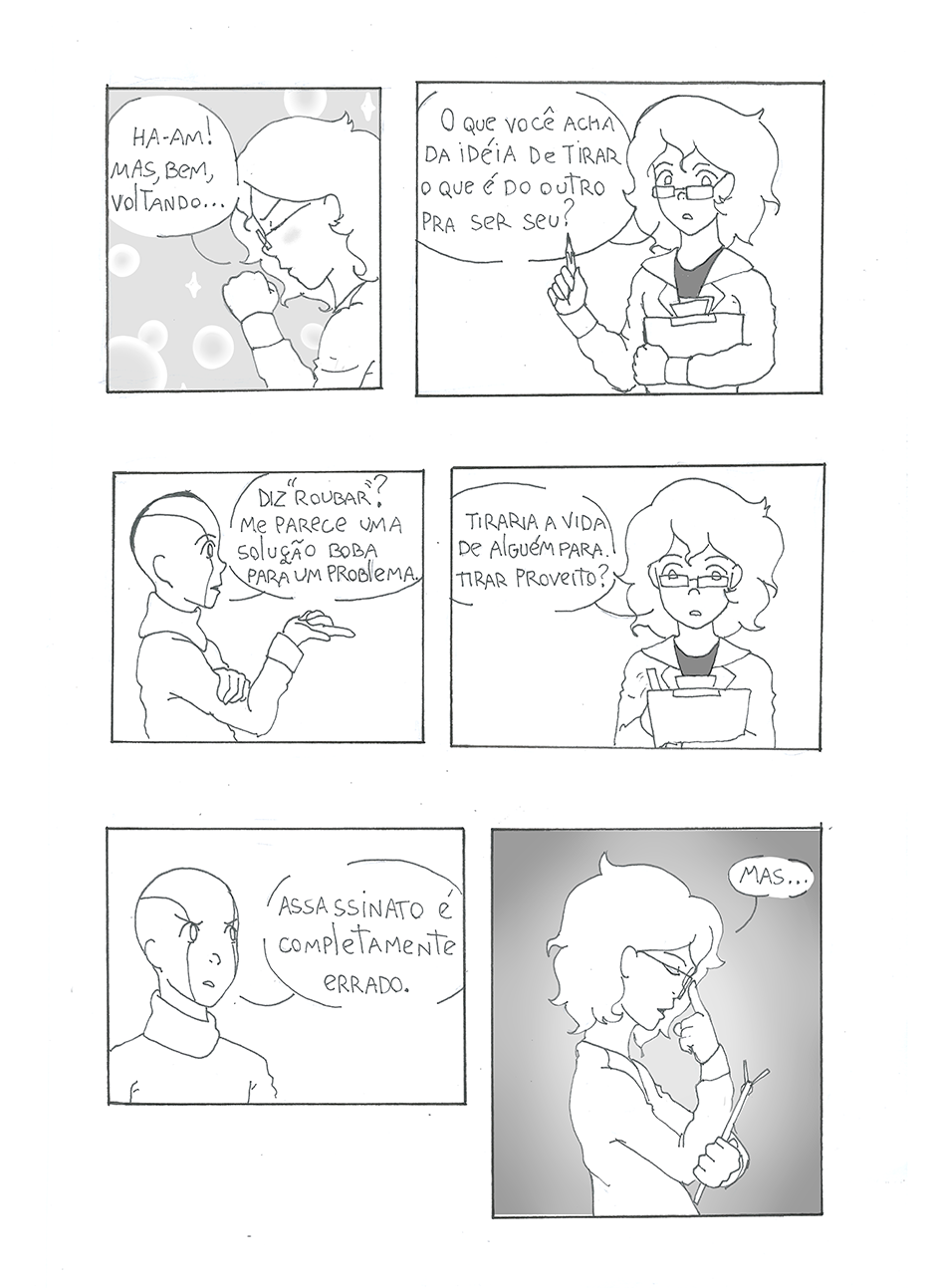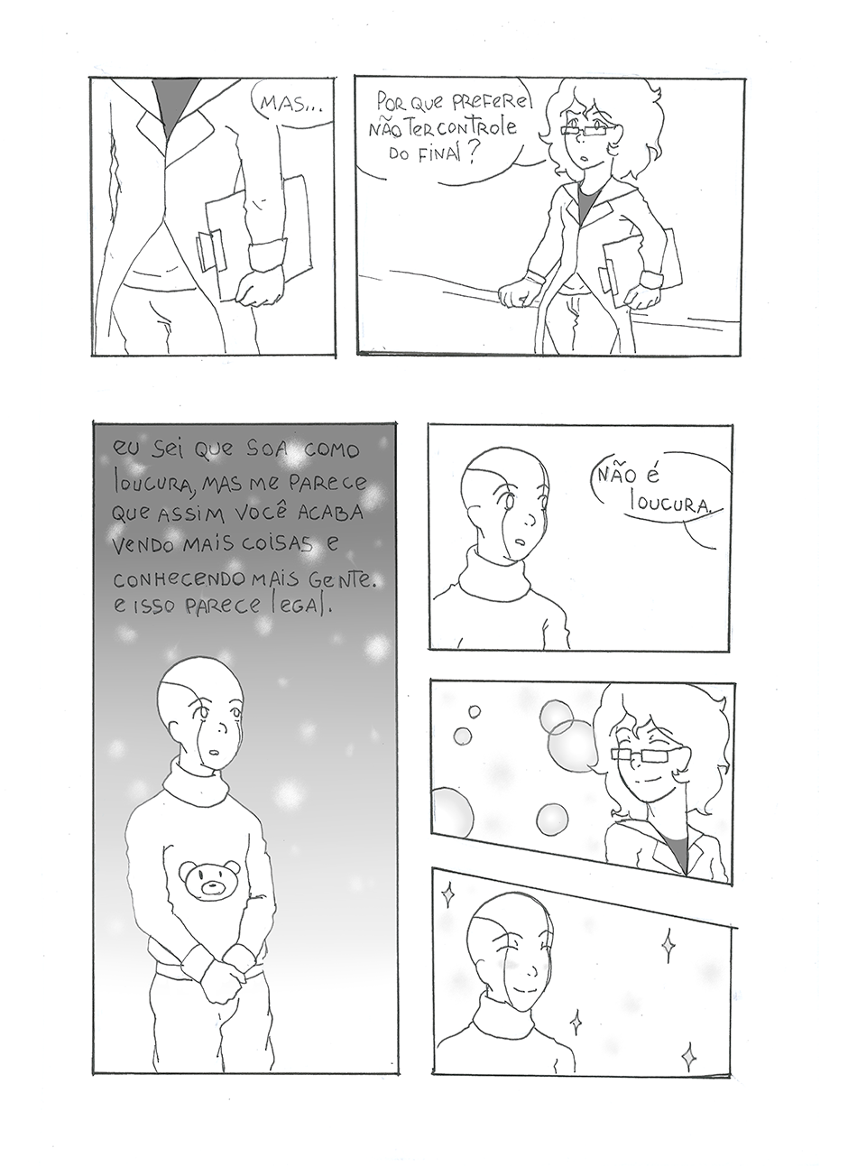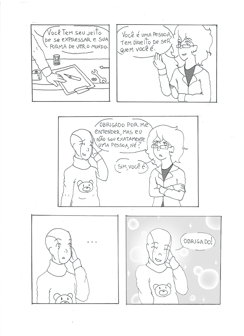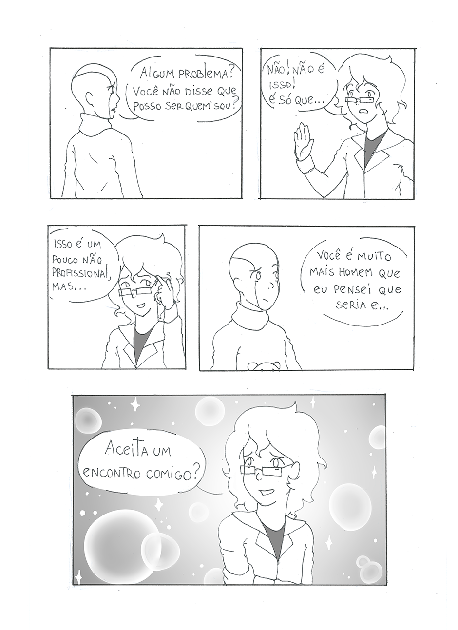 Sentado cara a cara com o primeiro robô capaz de sentimentos, um cientista tem que descobrir como ele sente. O que ele não esperava era descobrir por quem ele sente. Escrito por Duane Henrique Ilustrado por Welerson Daner
