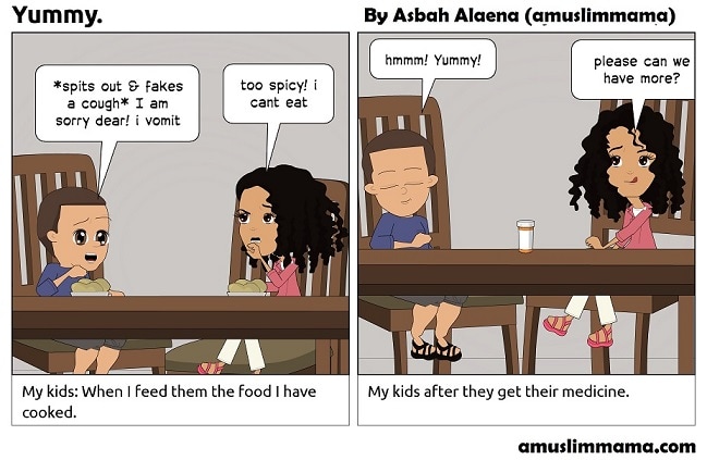 My kids reaction to the food i cook vs the medicine.