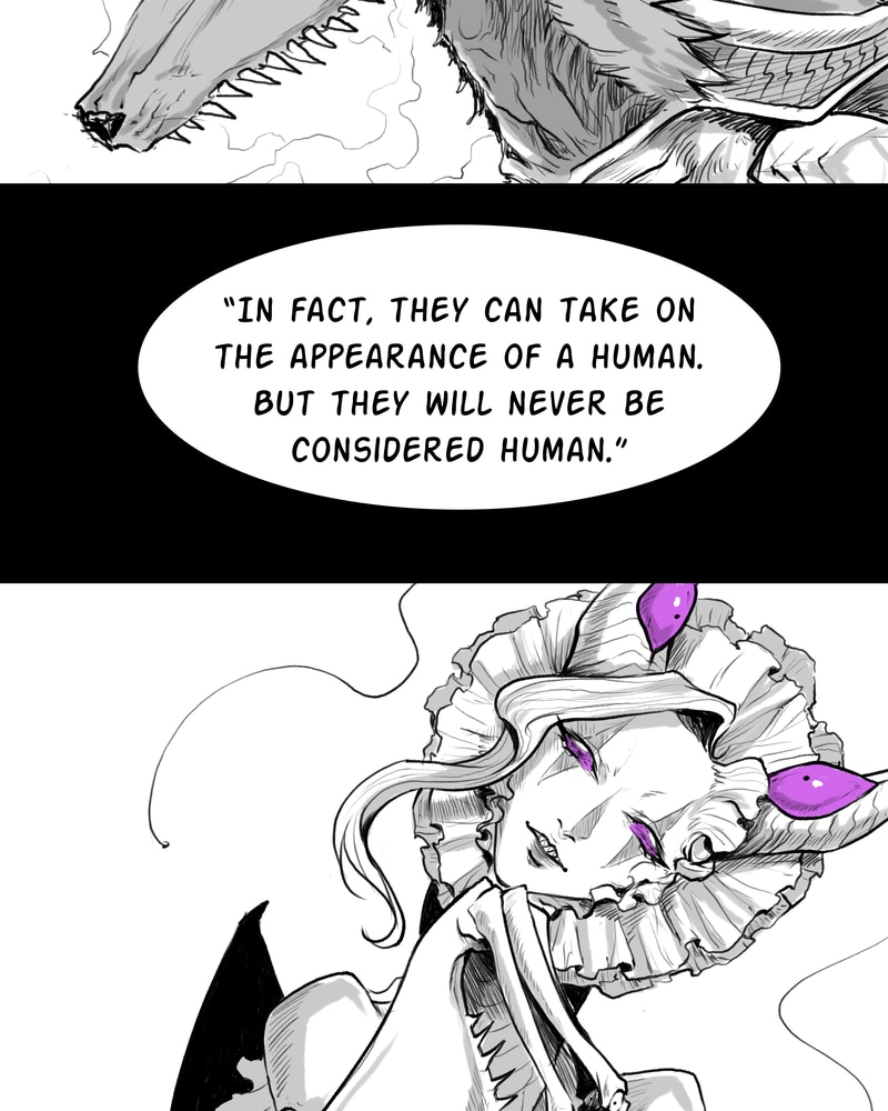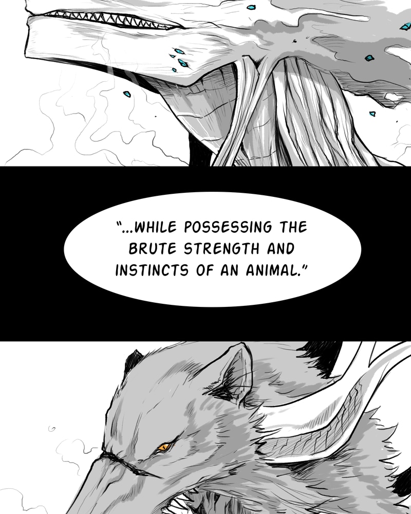 Aw, I got so excited. The humanoid forms are cool too, but I was already in love with the properly monstrous designs, they look so gooood. (Especially the fully beastly ones!) I hope we get to see a lot more of those throughout the comic. ☆