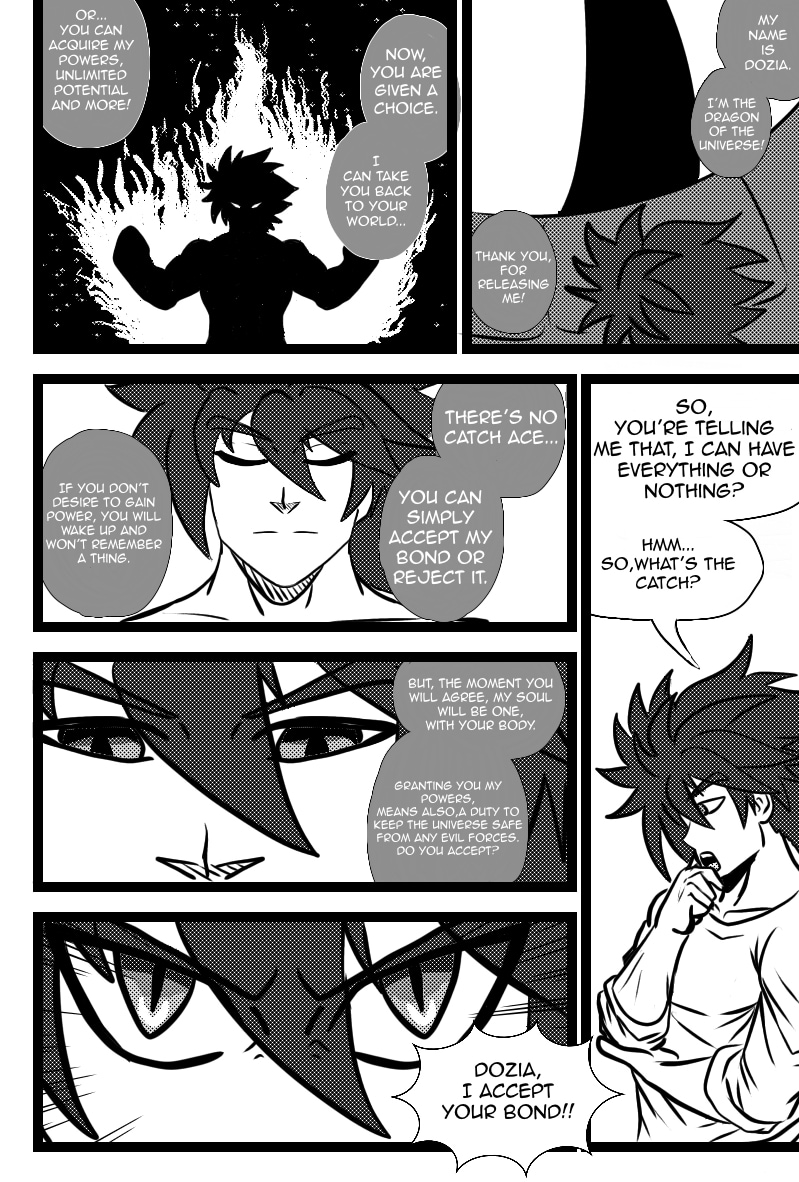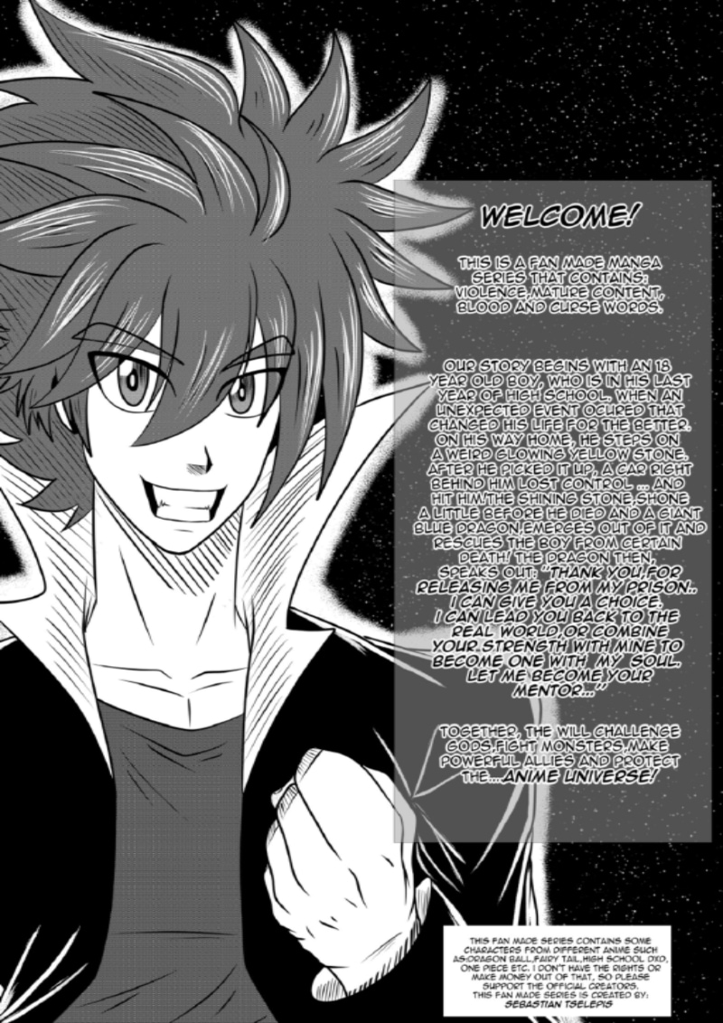 This is the story of a an 18year old boy, who recently graduated from high school. Although his school days are over, his adventure,is just beginning! His story begins when he accidentally stepped on a glowing yellow stone on his way home. A car that was coming from behind him almost killed him if it wasn’t for the stone that started glowing all of a sudden. Little before the car hit him,he was teleport in another dimension.from the stone, emerged a giant blue dragon. He thanked the boy for releasing him from his prison.