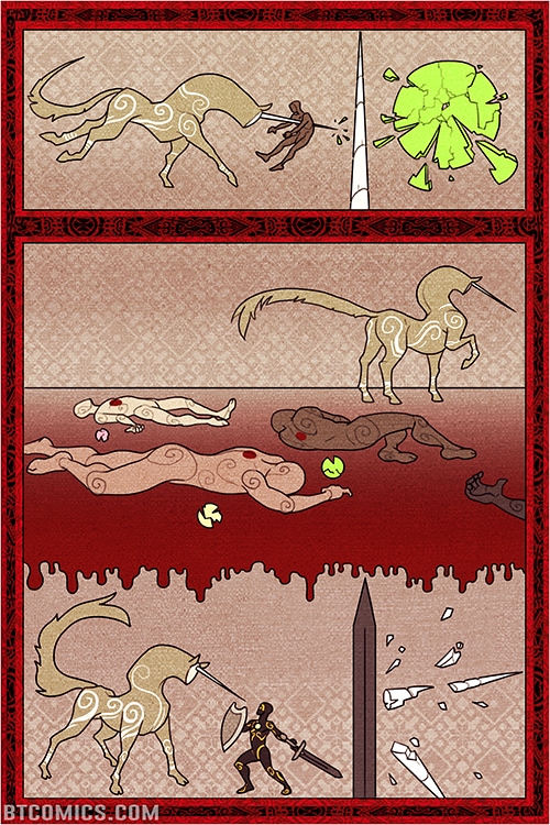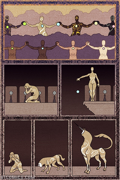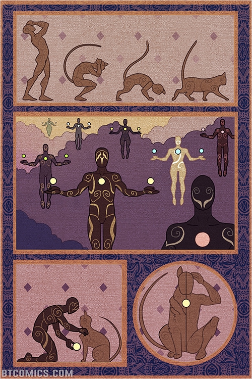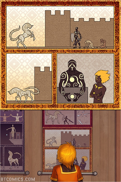An immortal boy, searching for truth, enlists the help of a fugitive to escape the enchanted walls of his home town, heedless of the cursed shapeshifters that inhabit the wilderness beyond. A story several years in the making. Rated PG, contains mild fantasy violence and blood. Updates Mondays and Thursdays on btcomics.com, updates on Tapastic when a scene is complete.