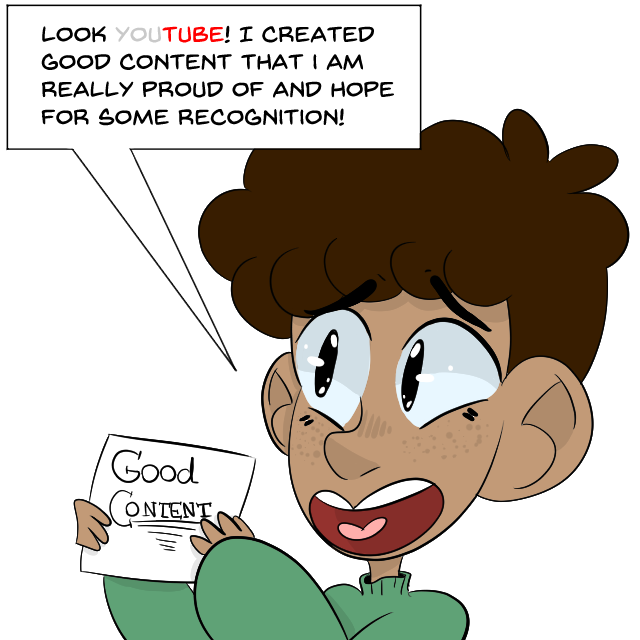 Okay, YouTube in this day of age could care LESS about quality content, especially in the arts. All they seem to care about is what gets them bank and what will get on THEIR version of a trending page.