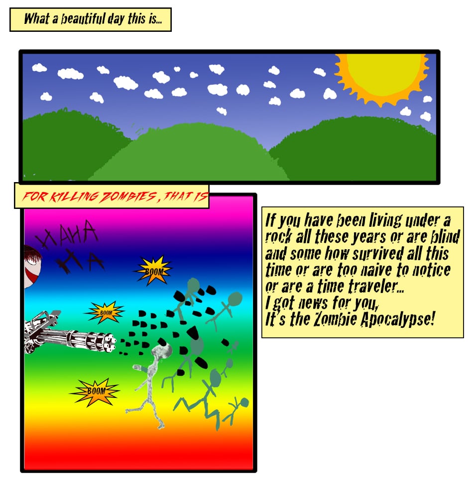 It's the apocalypse and who better to join forces then a white girl, a old man, a drunk, a gamer, a psychopath, a baby, a pregnant woman, and a dumb guy,ect...