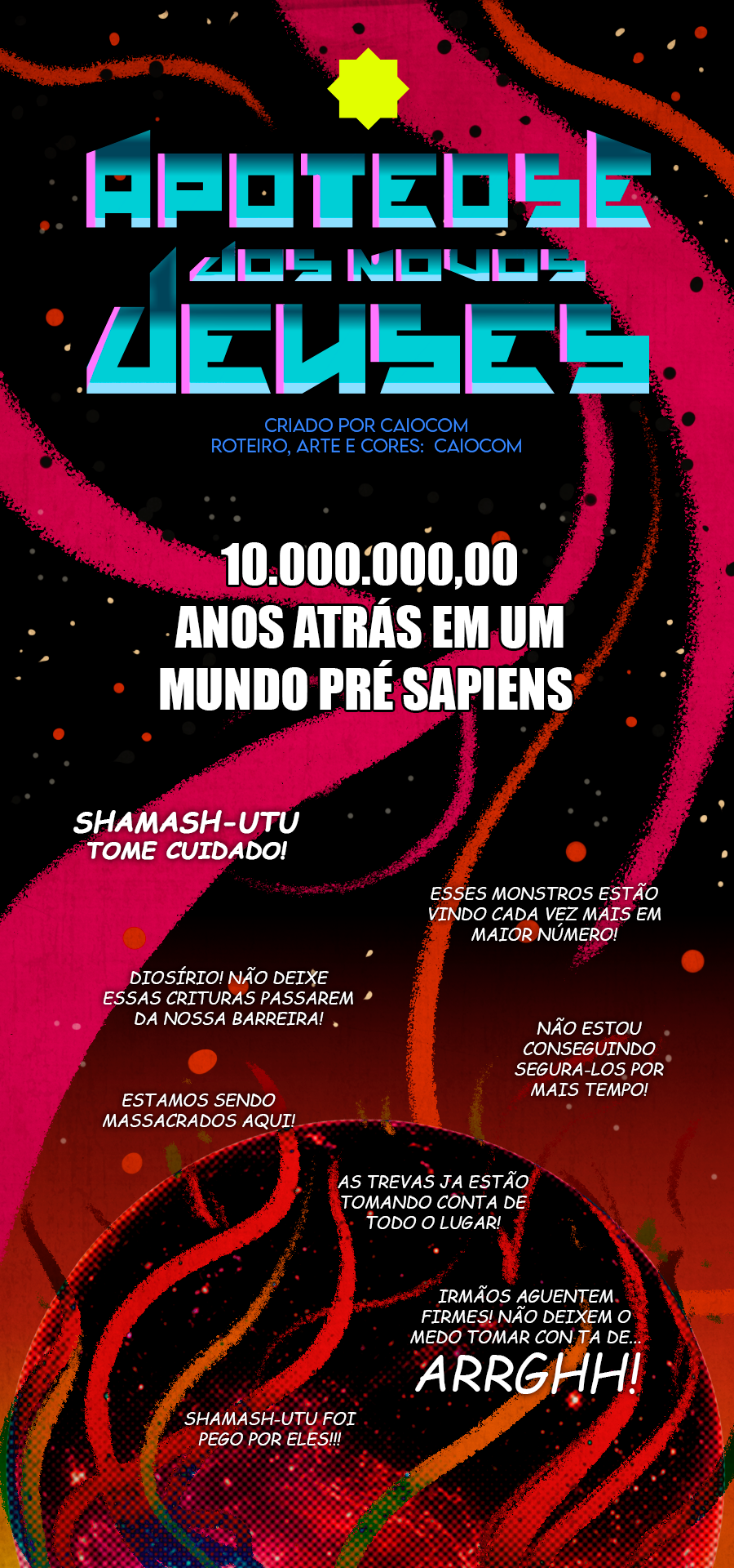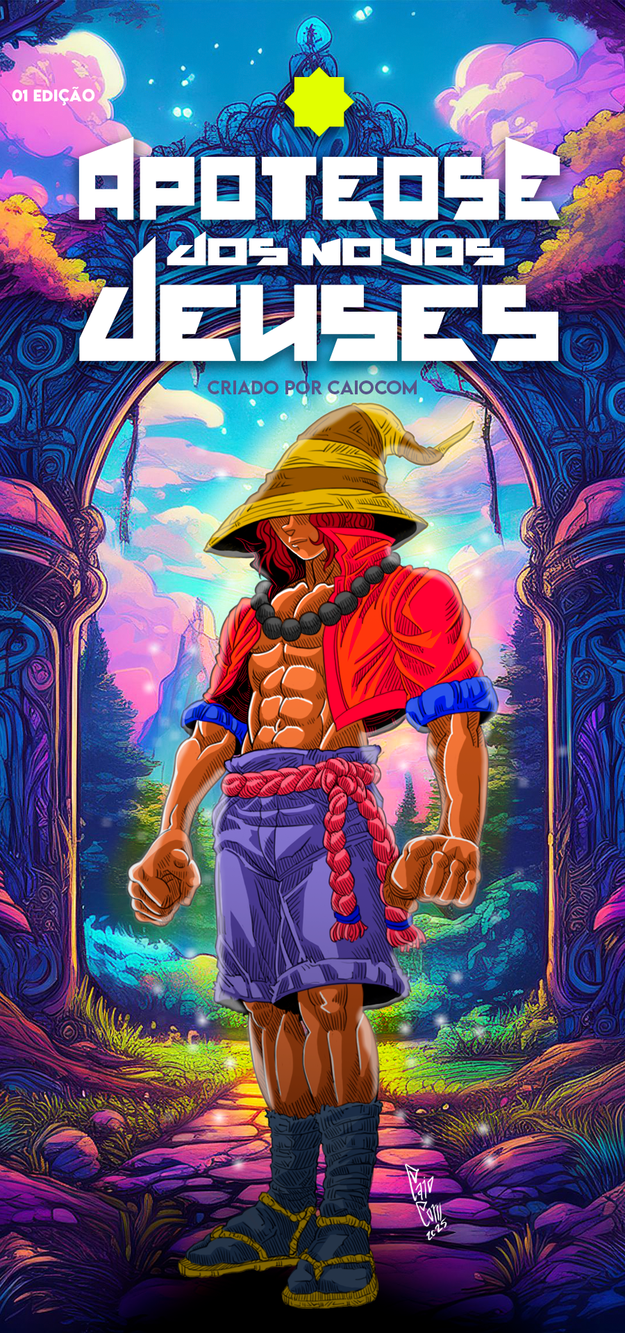 Apoteose dos Novos Deuses conta a história de Emídio Kanabi um jovem aprendiz que é designado por seu Mestre Diosírio Kanabi a descer até os três níveis da existência até chegar ao Tártaro afim de verificar se o selo que aprisiona o Bestafera do Caos se mantém imaculado, para garantir a existência da ordem cósmica e espiritual do mundo dos homens.