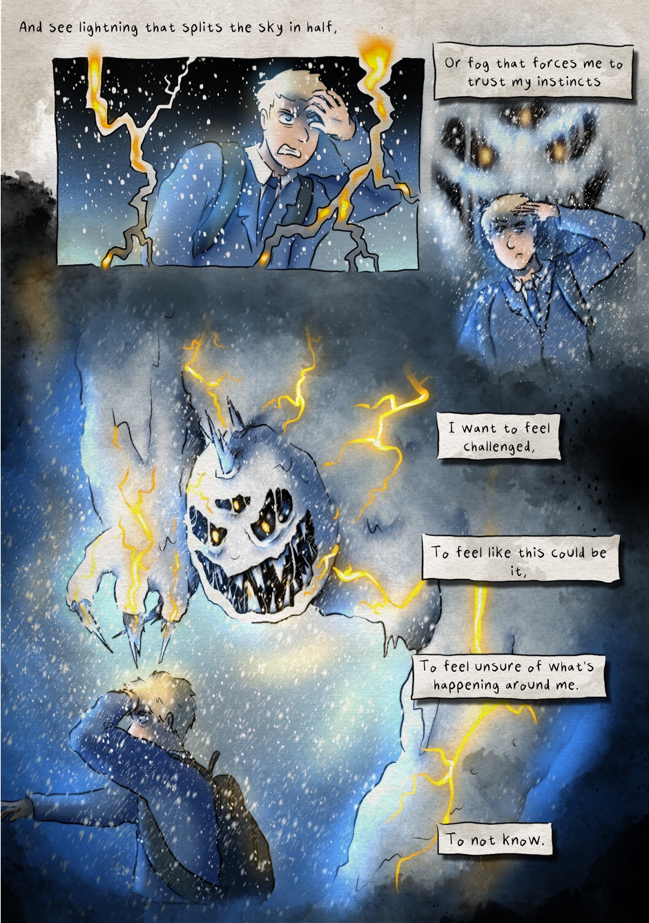 Hey, so this was my final art piece for college, I’m pretty happy with how it turned out. It’s quite different from Wrong Choice but I wanted to post it anyways 👍 also it’s originally laid out in a book form so it looks a bit weird in scrolling form 😅