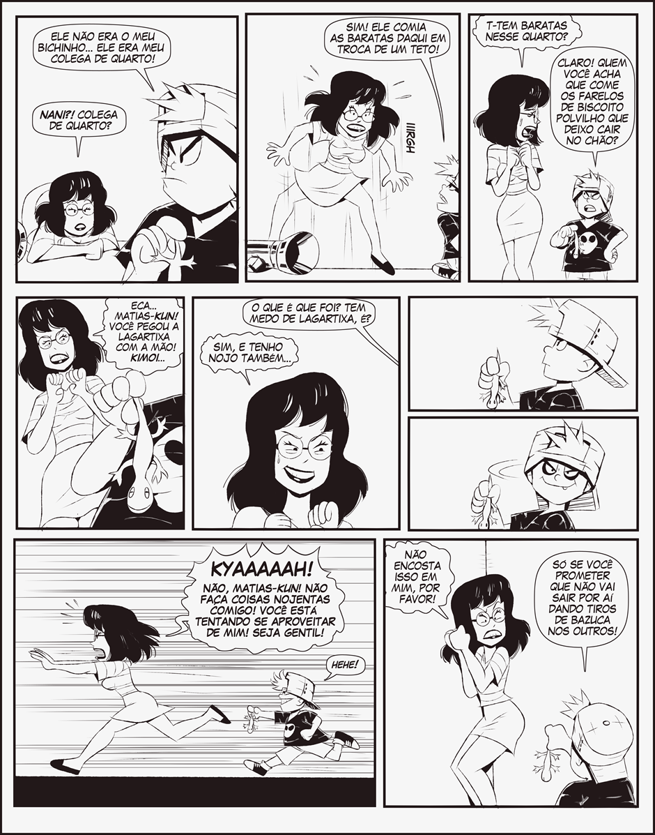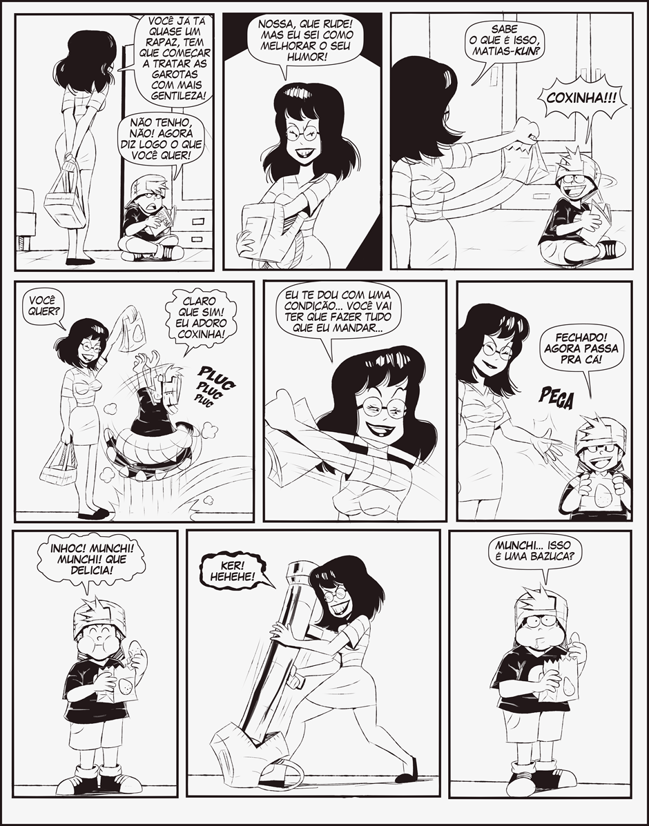 Matias é o típico gordinho do bairro, ele é um garoto simpático apesar do jeitão mal-humorado. Ele tem muita preguiça de estudar e sempre esquece de fazer as lições de casa. Seu objetivo de vida é comer coxinhas, ele faz qualquer negócio por coxinhas.
