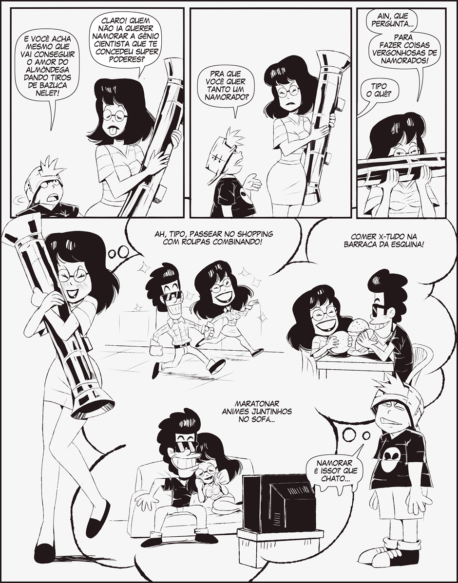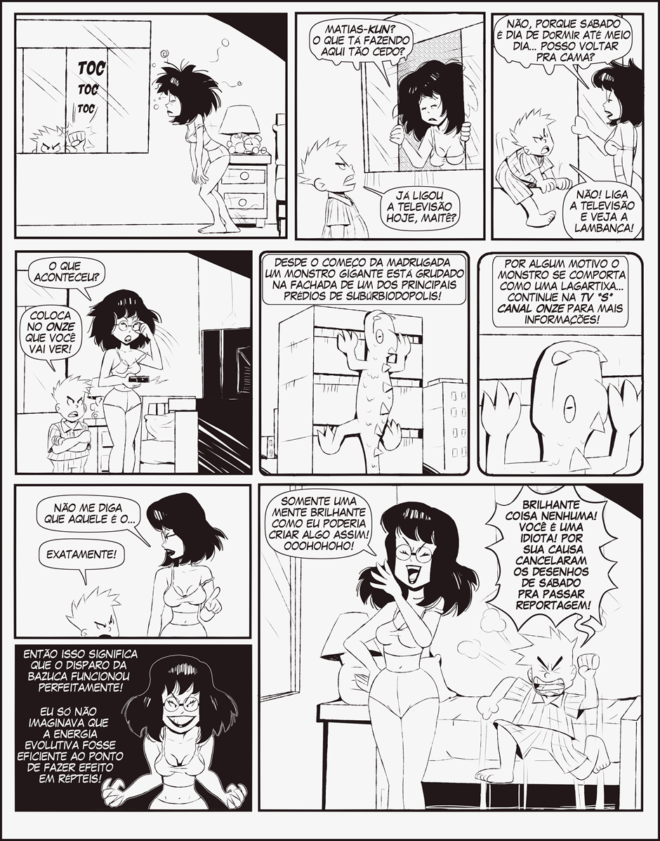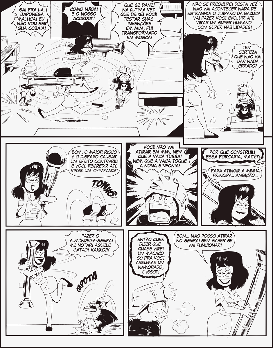 Sabendo disso, Maitê, frequentemente envolve o moleque em seus esquemas para conquistar o coração de Almôndega ou em algum experimento científico maluco.