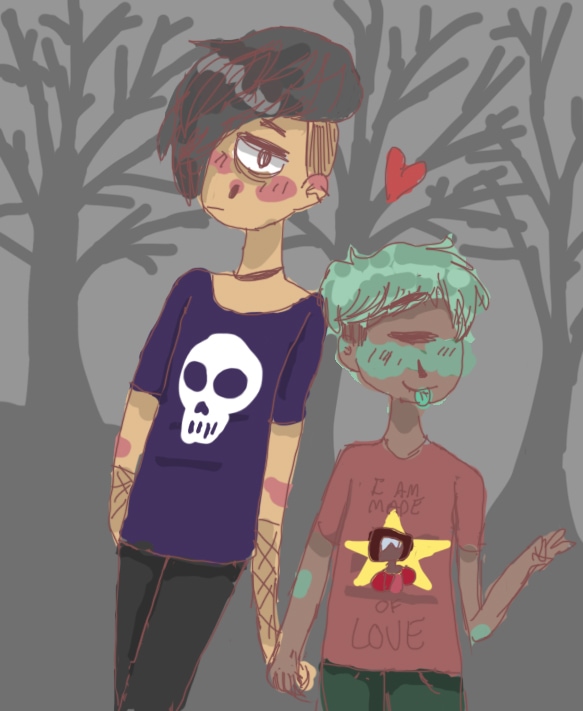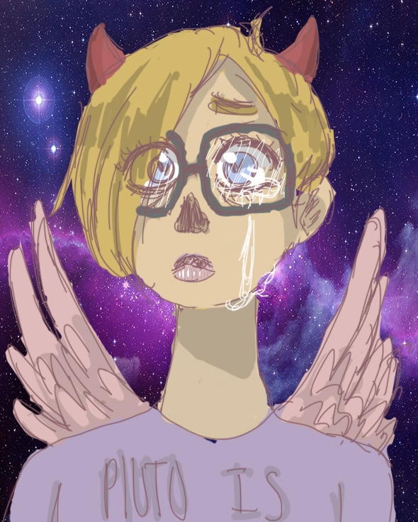 So, here is some art! First Art: My beautiful cover Second Art: Me Third Art: Weird Orange Girl Fifth Art: My OC's Jet & Ben (named after me and my twin sister's kindergarten boyfriends.) (feel free to mention the heathers reference)