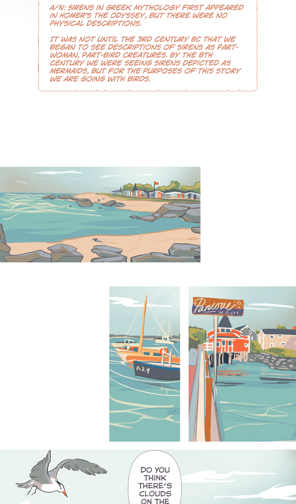 August - September is a short story about a siren who falls in love with the ‘wrong’ person, a story of mistaken identity, and a shared passion for music. Kinda trope-y, kinda cheesy, but sometimes that’s what we’re in the mood for.