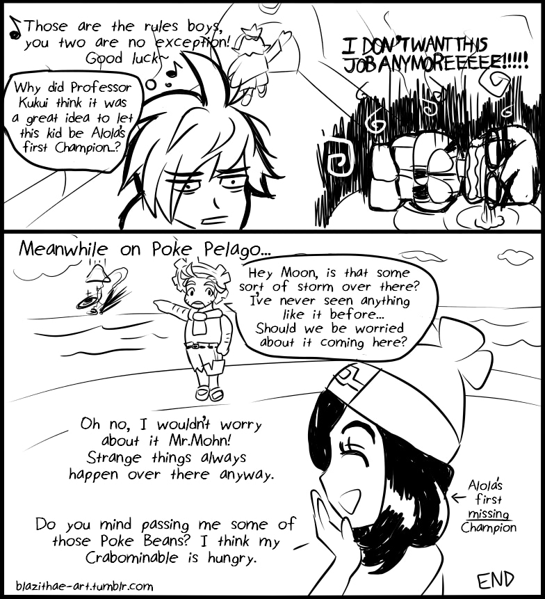 A silly comic I made back in 2017 depicting the after events in Pokemon Sun and Moon.