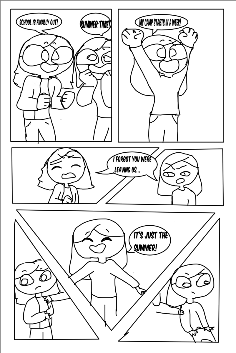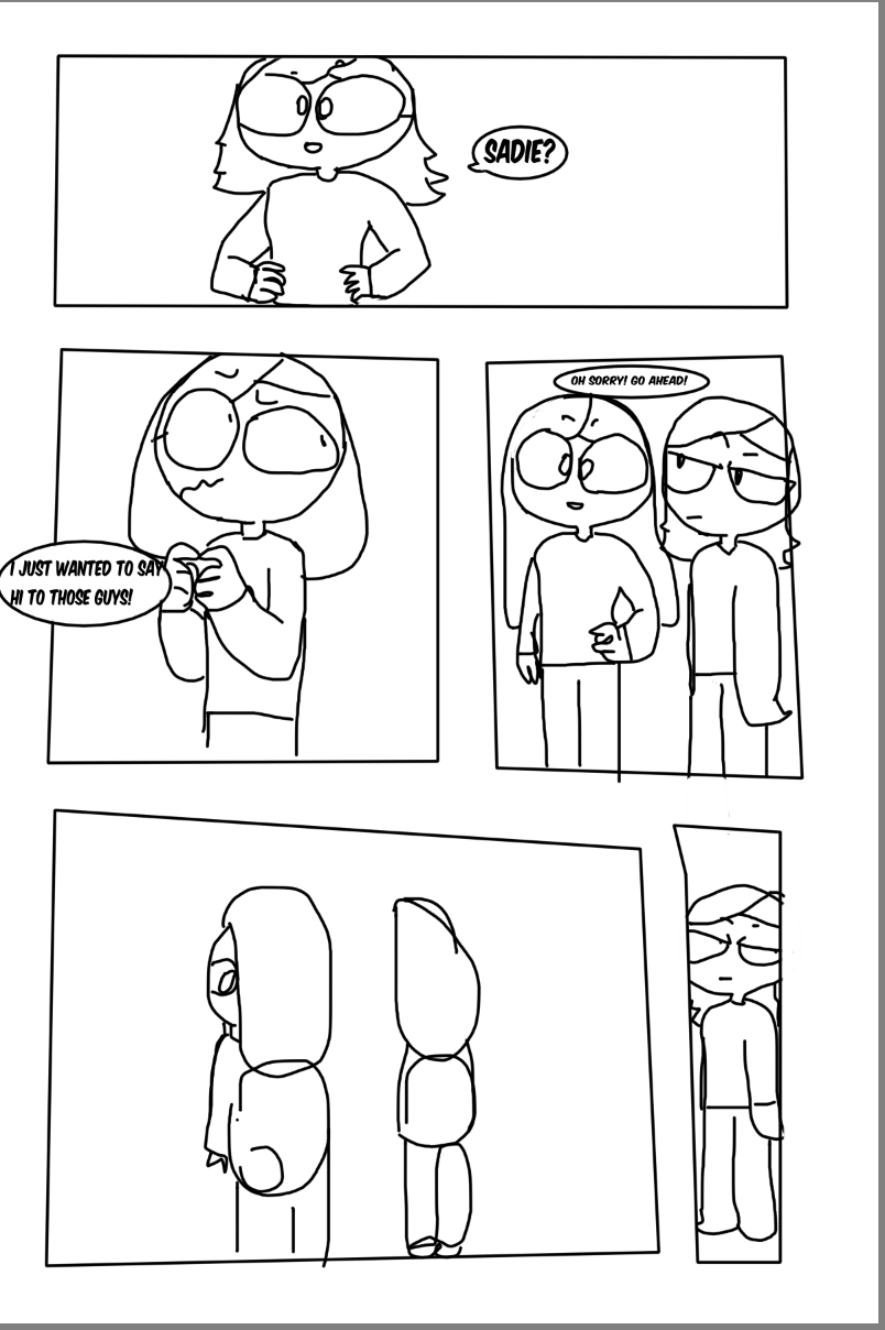 Notes for readers: Sadie has straight short hair, Emma has those tufts at the end, and Becca has long hair.