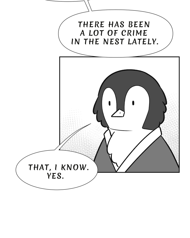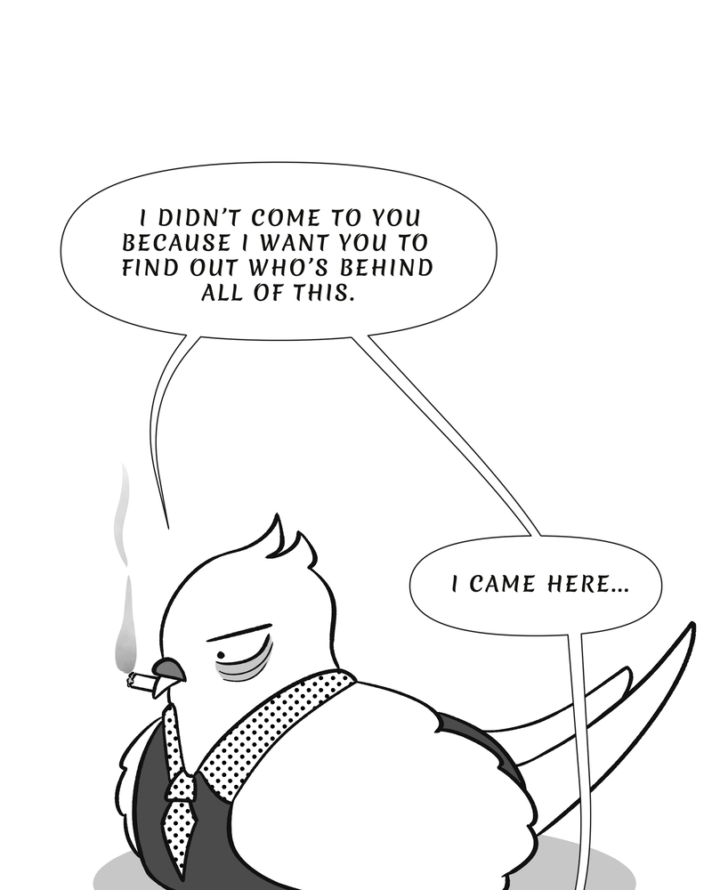 Bartolomeo's old nemesis is back to make the birds' life miserable in The Nest. It is his mission to stop him and bring back peace to the city. It's not so easy however, when one is struggling through life in a black and white world. And as everybody knows: A Noir always ends in a tragedy. . . right?