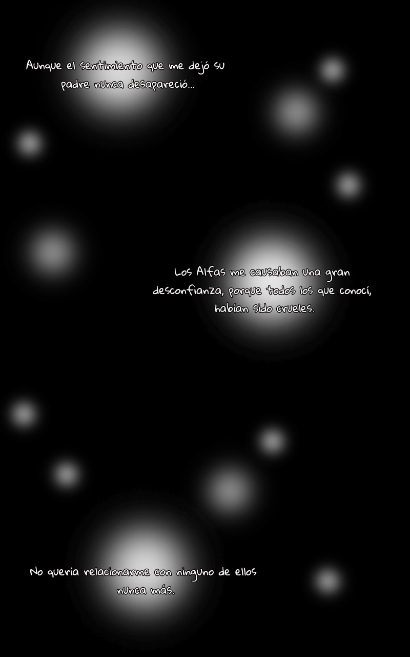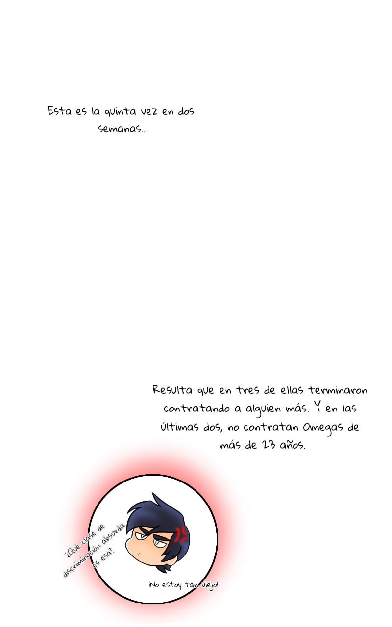 Alex Rhendir. Un Omega adulto bastante irritable, desconfiado y prejuicioso debido a un incidente pasado que lo marcó cruelmente. Ahora, cinco años después, es un padre soltero que lucha por mantener a su pequeño hijo, mientras su disgusto hacia los hombres Alfas le complica formar relaciones a largo plazo con estos mismos, a pesar de sentirse solo, niega volver a querer estar con alguien para compartir su vida. Se verá realmente confundido cuando todos los conceptos que ha adquirido con experiencias propias, se ven afectados por un joven y romántico escritor que al igual que él, aparenta lo que realmente no es.