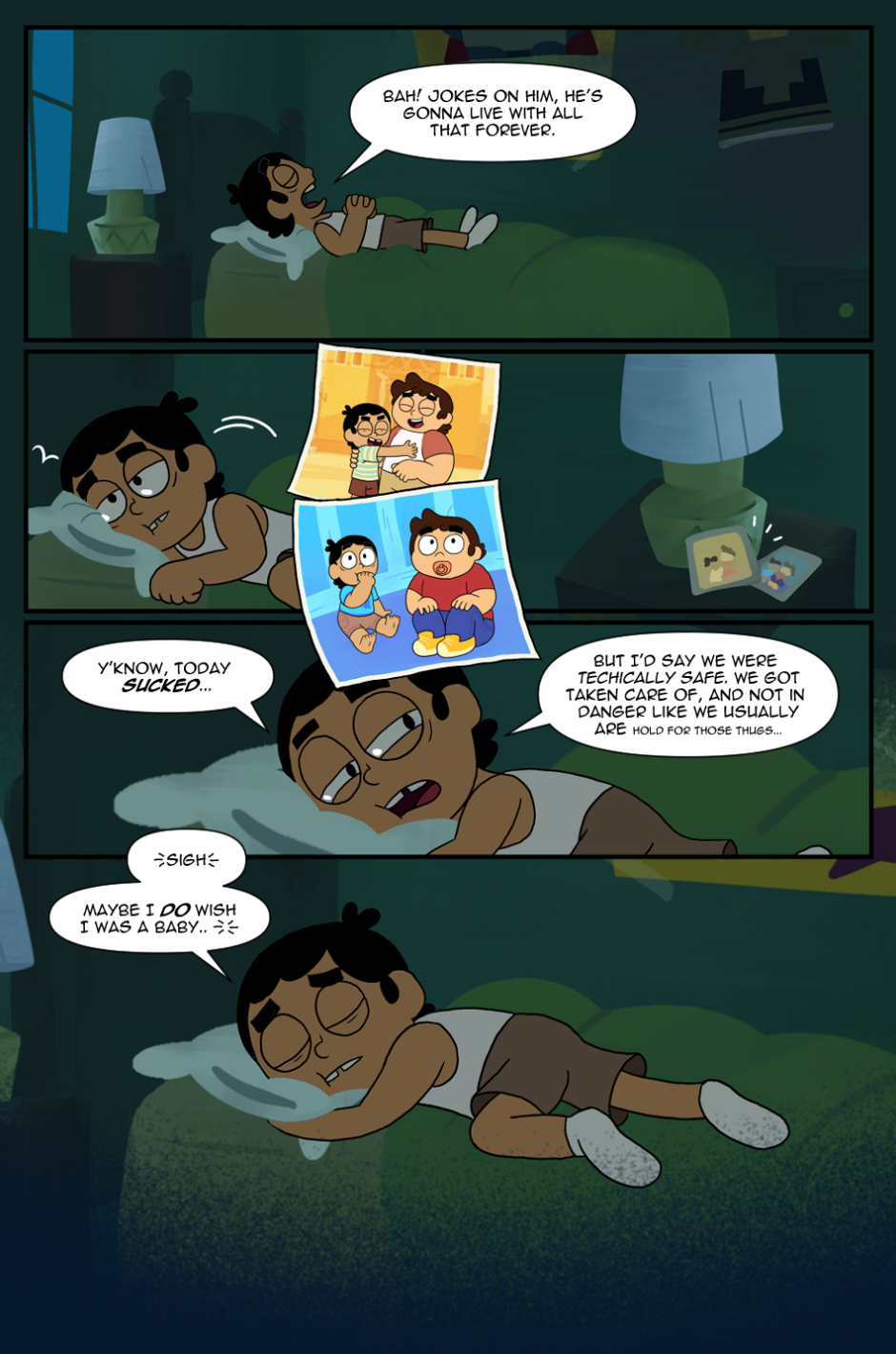 Little do they know that a suspicious fiend is willing to stop them in their tracks. Will Baby Victor and Baby Valentino be able to find this ancient, infant treasure and make their wish. Find out in the first ever web-comic based on the Cartoon Network series, "Victor and Valentino".