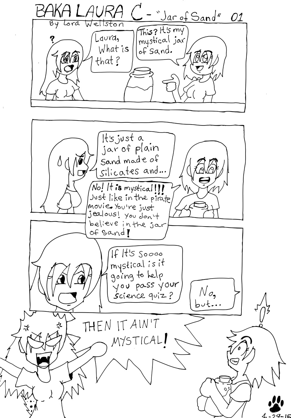 UPDATE: Sorry, but I am not continuing this series anymore. Well, not on a regular basis. I may occasionally add another comic very sporadically. Times to look for any random *New* Baka Laura, I would say anyway, would be starting late spring through summer. Thank you everyone for all your patience and support! (for the few of you that did like this comic and did subscribe!) 8D
