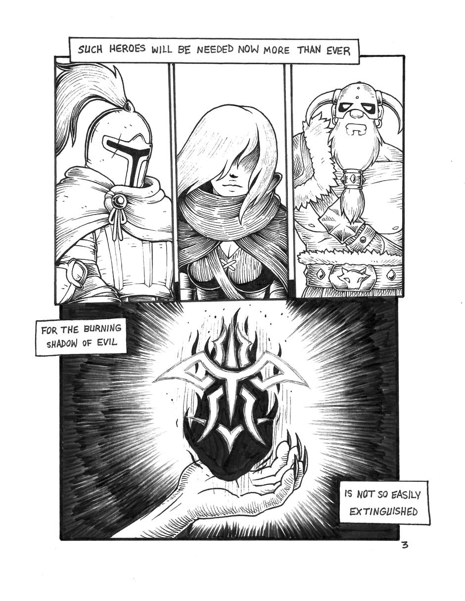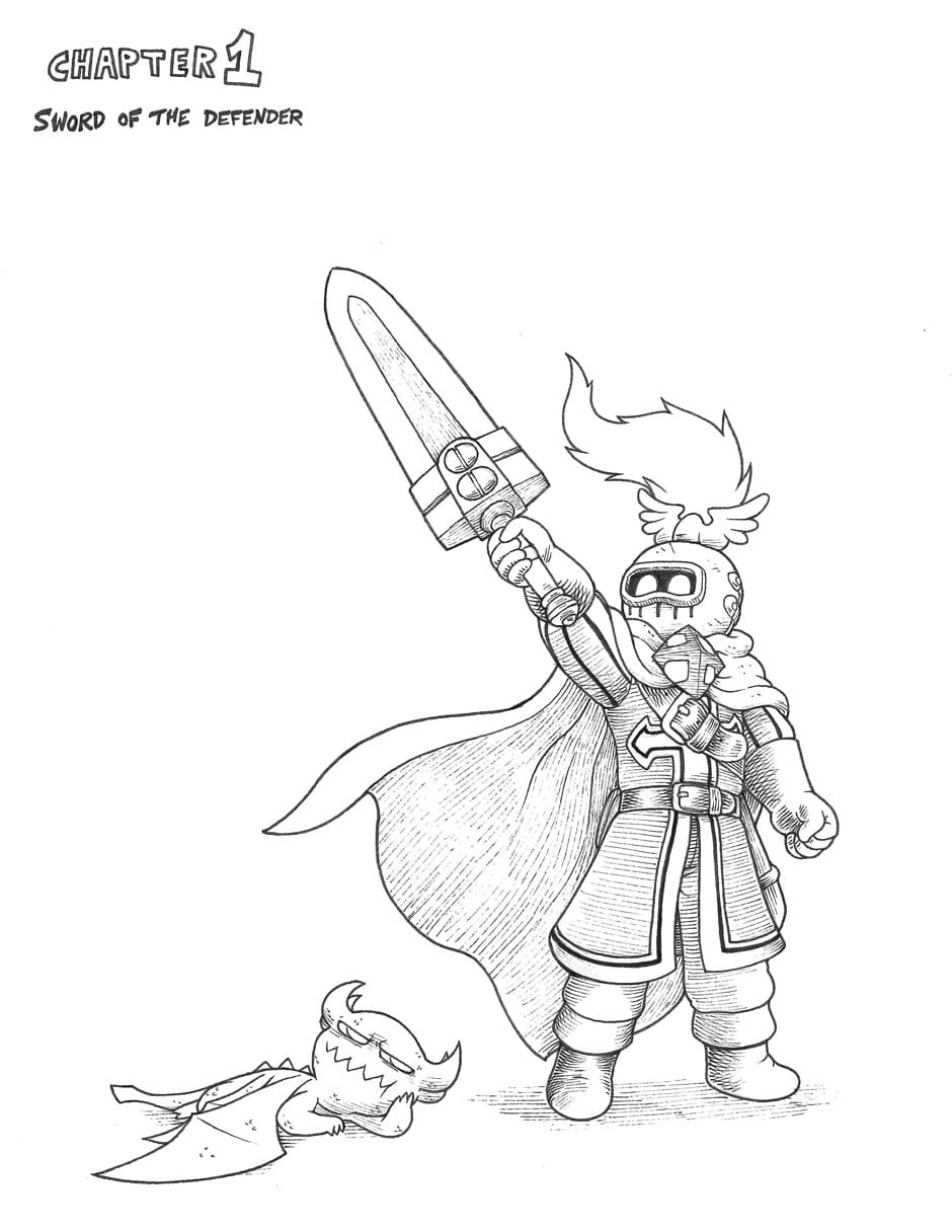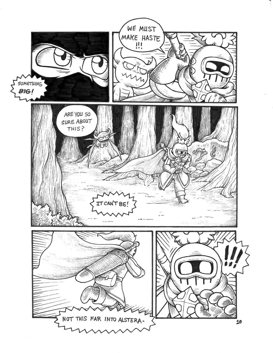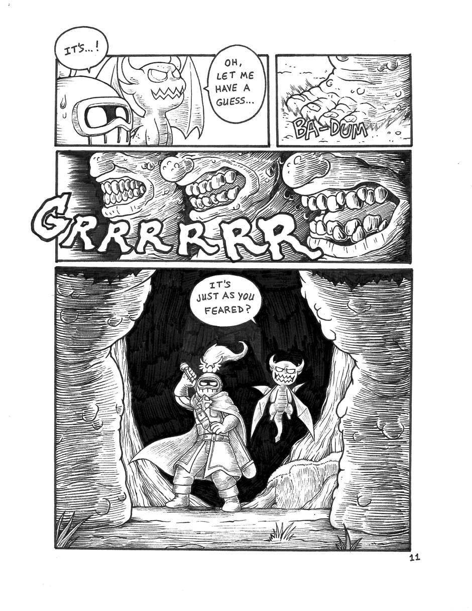 We meet our two heroes: A knight whose stout heart makes up for his short stature, and his fiery dragon companion Orpsy.