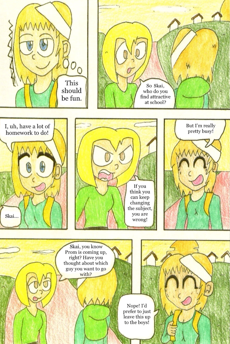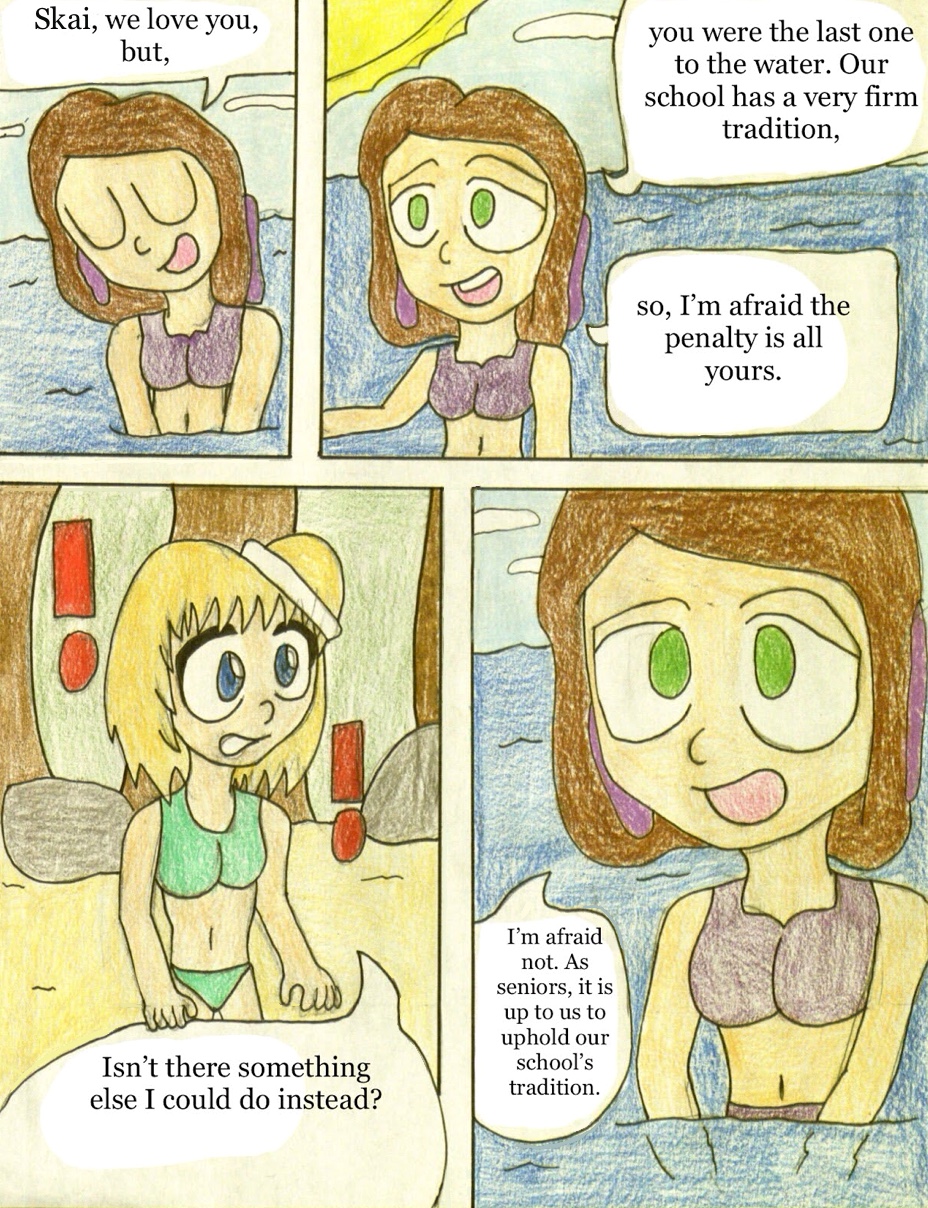 Skai is asked by her peers to join them at the beach, but realizes that the last one in the water has to skinny-dip. On her way home she runs into Nimanu, who tells her she must find a Prom date by tomorrow night.