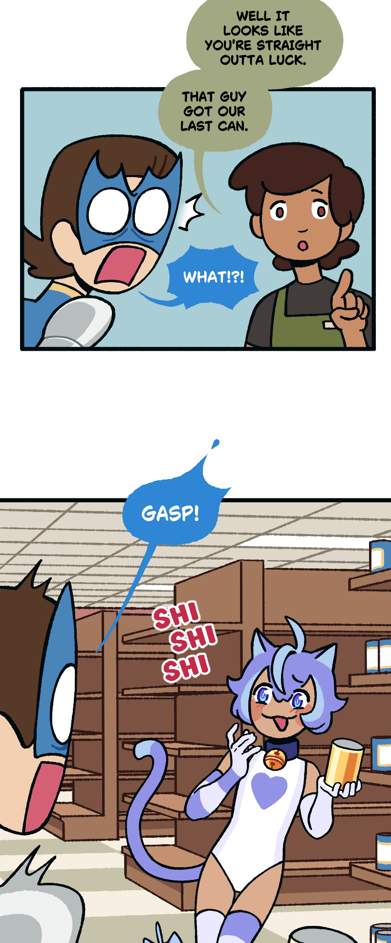 Nefarious supervillain Bean Girl visits her local Empty Store on her quest to find the Super Mega Magic Beans! Unfortunately, it seems her arch nemesis Cat Boy has followed her there!
