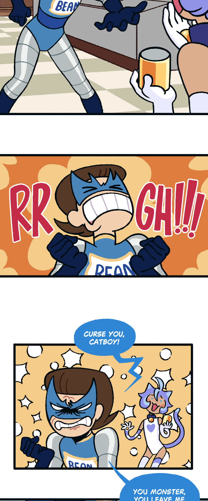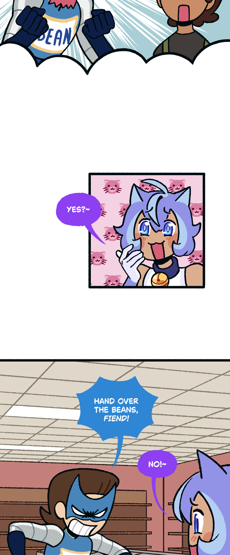 Episode title: Beangirl assaults Catboy to steal the beans he legally owns.