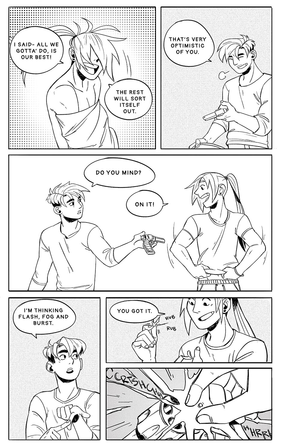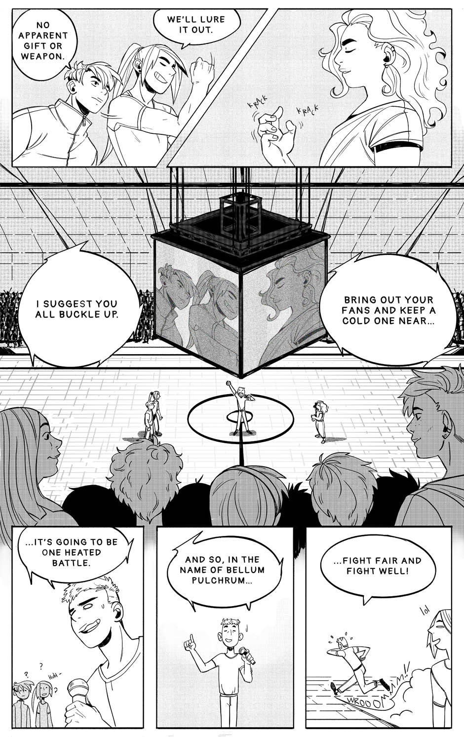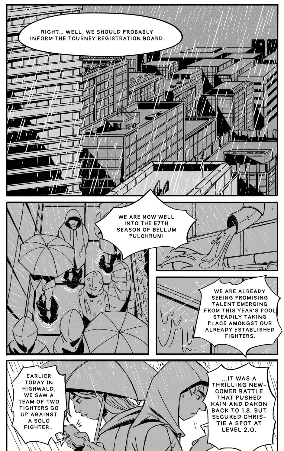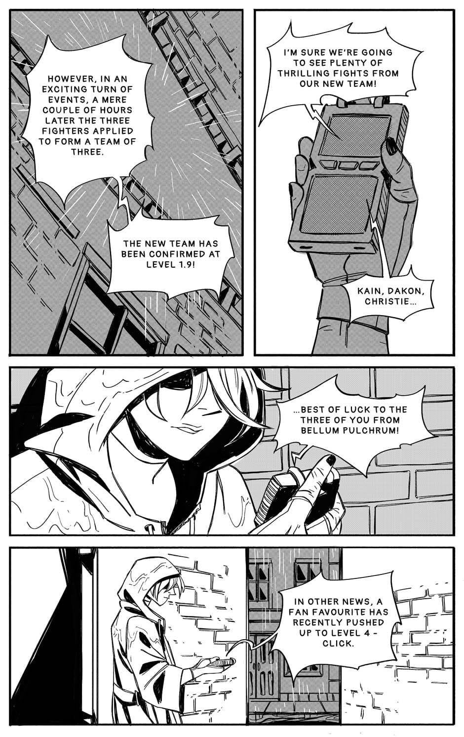 In a world where becoming a champion of the global tournament Bellum Pulchrum is a life-long dream of many, the road to earning the title is ridden with danger and fierce competition. Kain, Dakon, Christie and Raki are dead-set on reaching their goals through the means of this deadly sport. The comic is currently on hiatus.