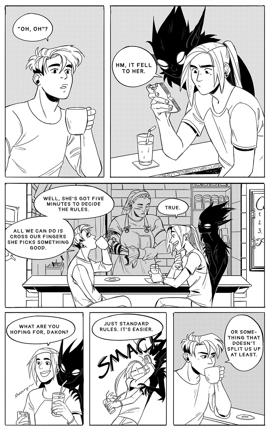 The entire thing has already been uploaded to Webtoon Canvas, however I've heard lovely things about the community here on tapas, and I wanted to branch out and give it a go. The first couple of pages of Chapter 2 will be up in a bit and then I'll continue to upload one page every Tuesday.