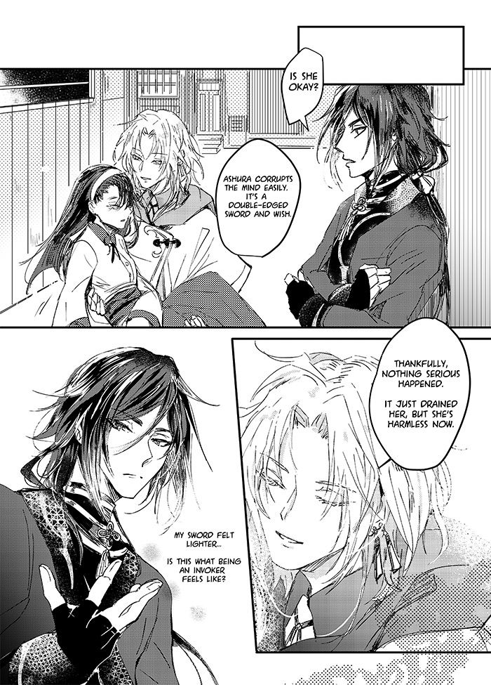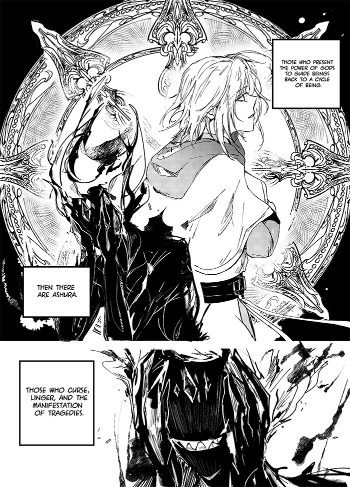 The art and storytelling is beautiful! The pacing for the action sequence was well done! I love how ashura, invokers, and guiders are introduced and informed without unnecessary information dumping, but providing the right tid bits of information to keep readers intrigued and wanting to learn more! I can’t wait to read more and see how Kouyun’s adventure unfolds, and whether or not he does take Kiso’s suggestion.