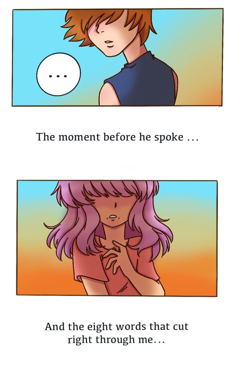 Hello author! I wanted to ask... is this something that happend to you or did you come up with this scenario?? Cuz you just discriminated my life.😁When i was in 7th when i fell in love and got rejected😅thankfully the confession and reflection didnt affect the relationship we had established and we've been best friends ever since.We consider each other family and are planning to live together😄its a cool coinkidink😋 i really like your art style and the characters. I wish you the best of luck in your comic making endeavors :)