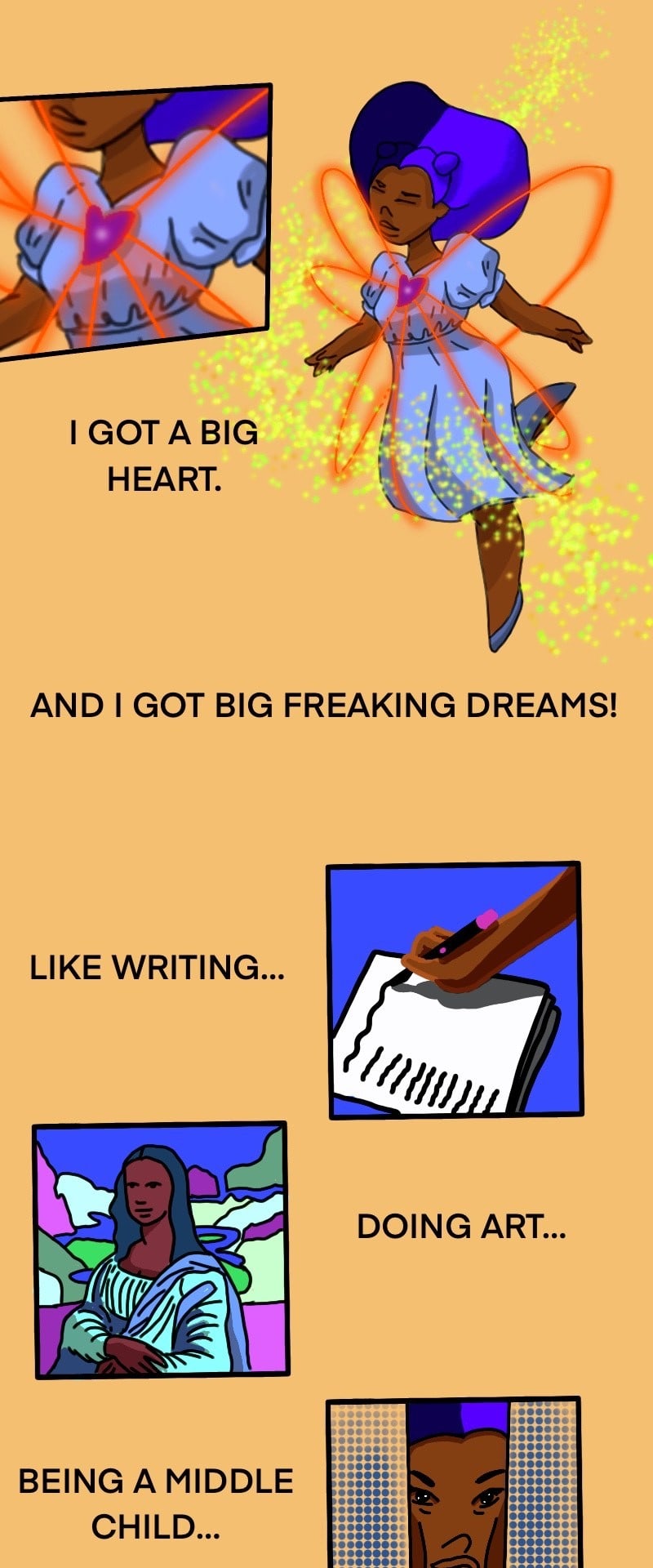 Irene wants to live her life to the fullest and freely experience the world. Sadly, no one told her having such dreams was a double edge sword. Does she have a ride and thrive sisterhood with her best friends? Yes. When they hangout does the universe make them a magnet for constant bullcrap like attempted kidnapping? Also, yes. Does she adore her male cousins to death? Yes. Is she tired of actually fist fighting with their jealous admirers due to misunderstandings? Also, yes. Dream big Irene.